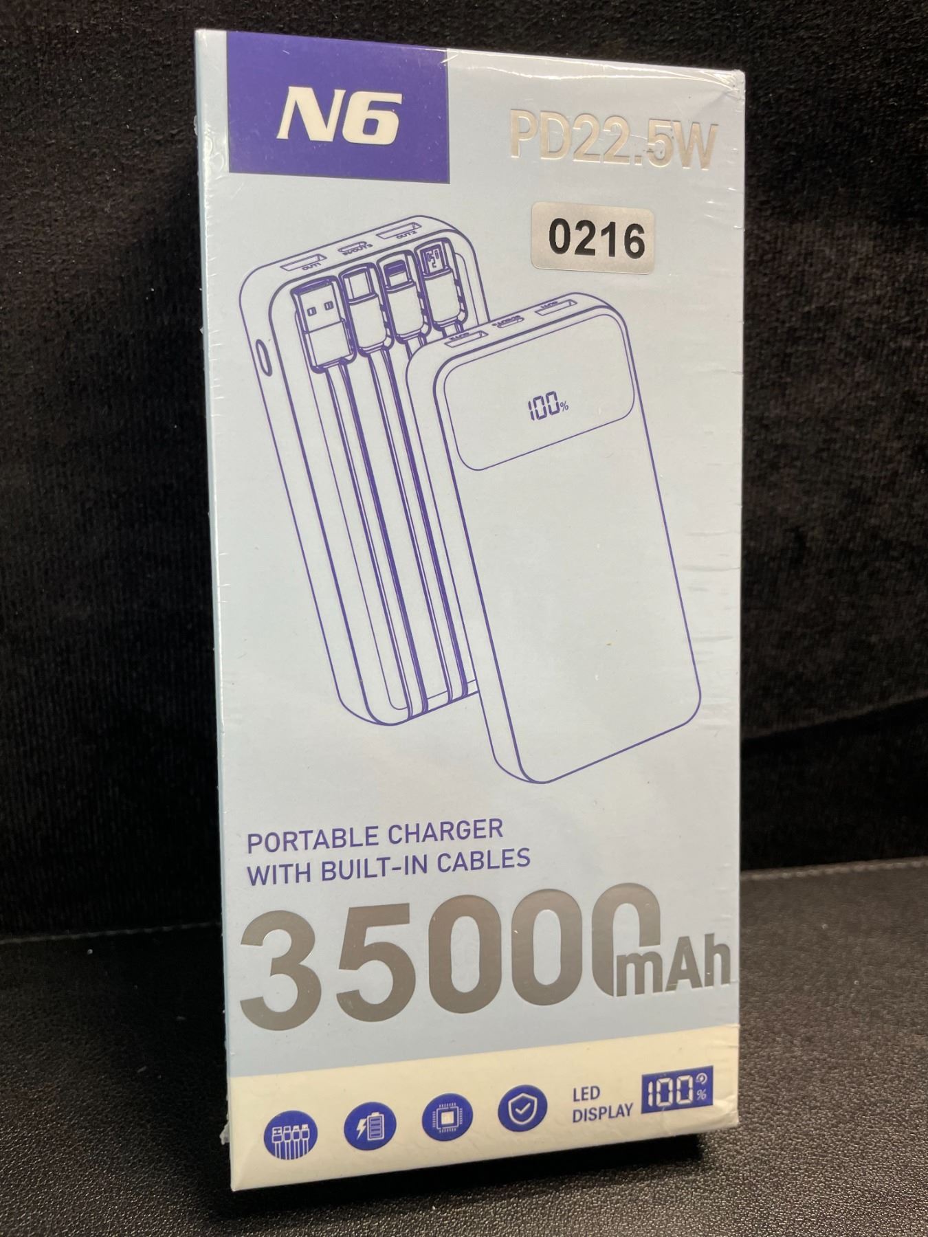 1 N6 High-Power Portable Power Bank/Charger (35,000mAh) w/ Built-In Charge Cables - New Sealed!