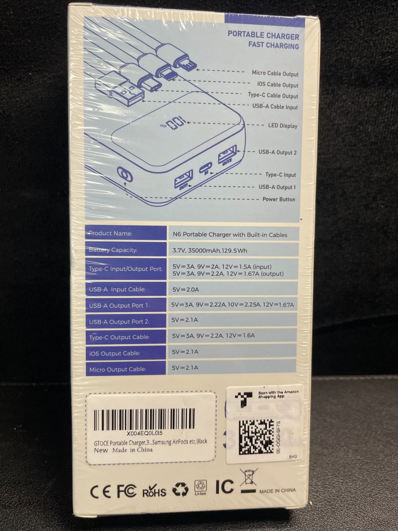 Portable Charger,35000mAh Power Bank with 22.5W Fast Charging LED Digital Display Battery Pack with 6 Outputs 2 Inputs, Type C Powerbank Portable Charger for iPhone 15 Samsung AirPods etc., Black