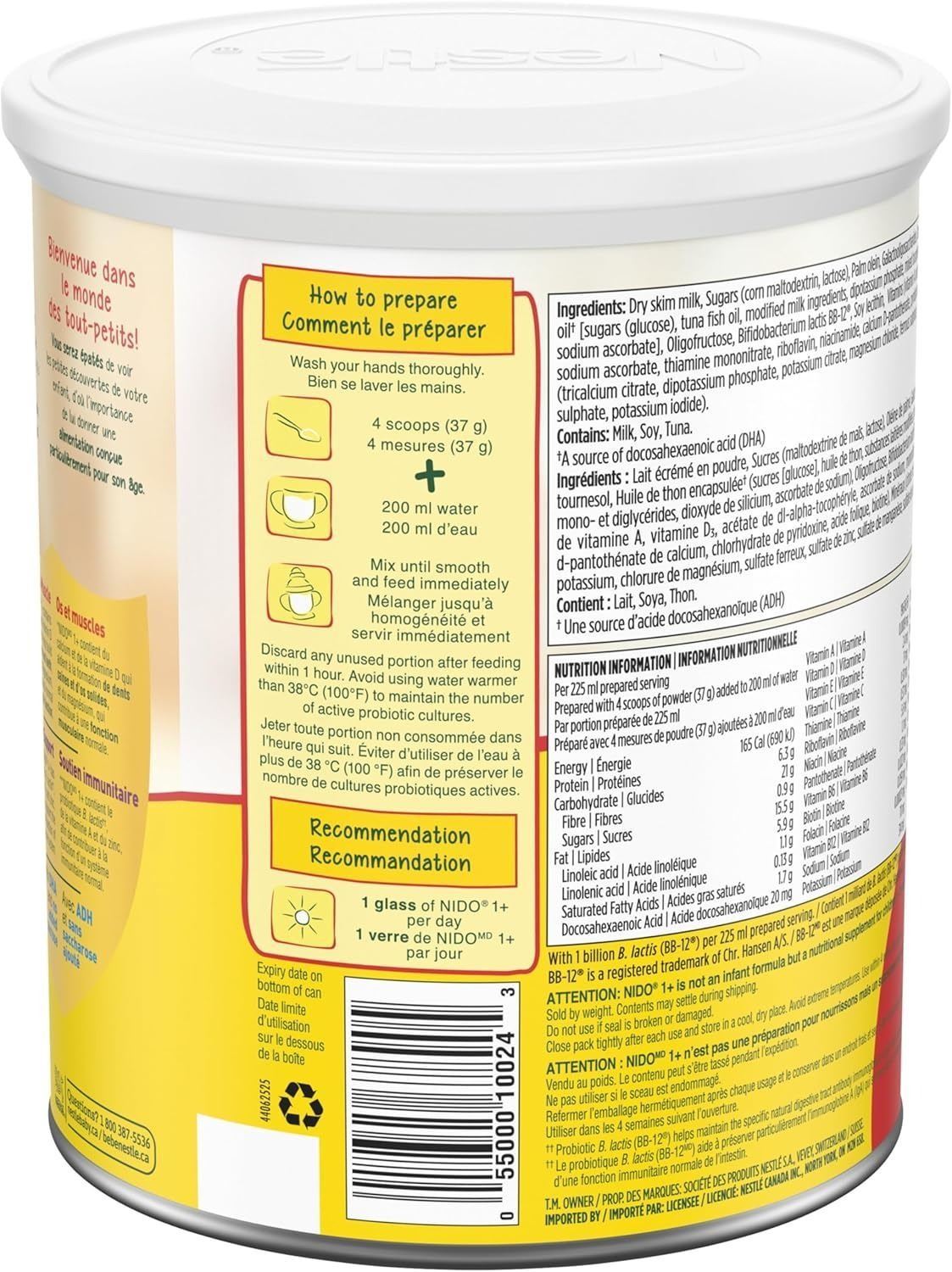 NIDO 1+ Toddler Milk-Based Nutritional Supplement With Calcium, Vitamins D and A, Magnesium, Probiotics, DHA, For Teeth, Muscles, Bones, Immune System And Brain Development, 850 g