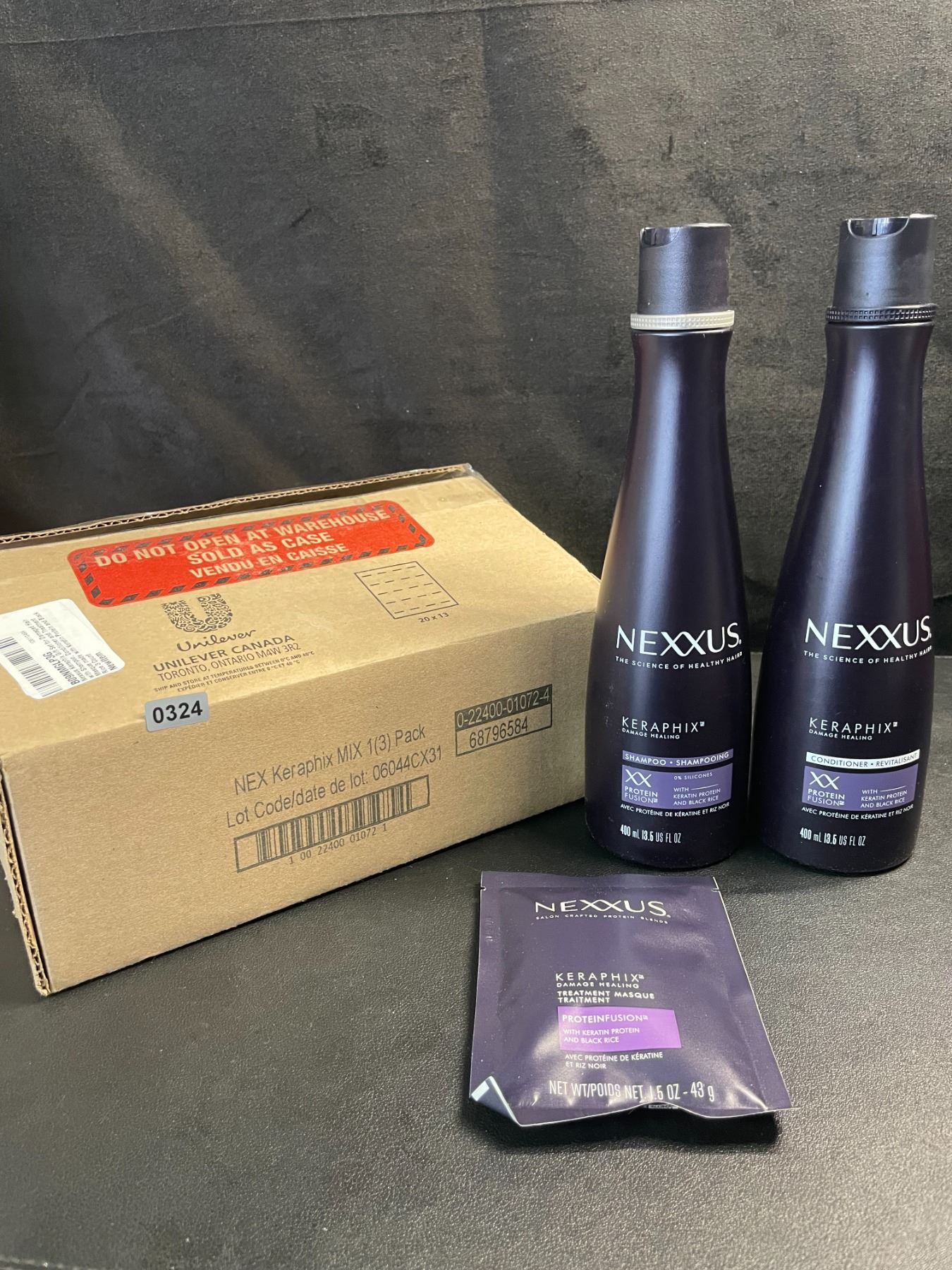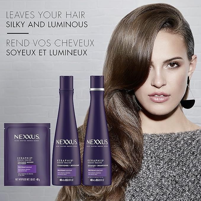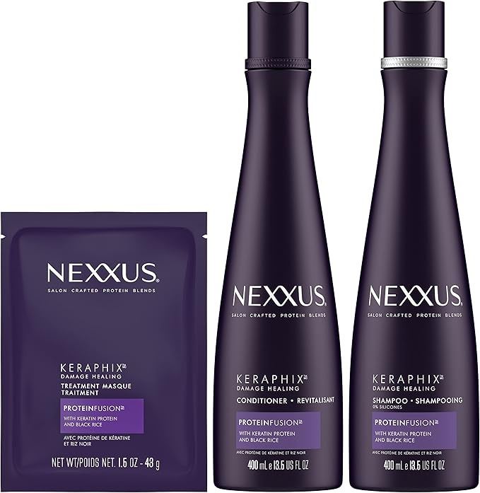 Nexxus Keraphix Gift Set for Damaged Hair with Shampoo, Conditioner and Treatment Masque made with Keratin Protein and Black Rice 3pc set