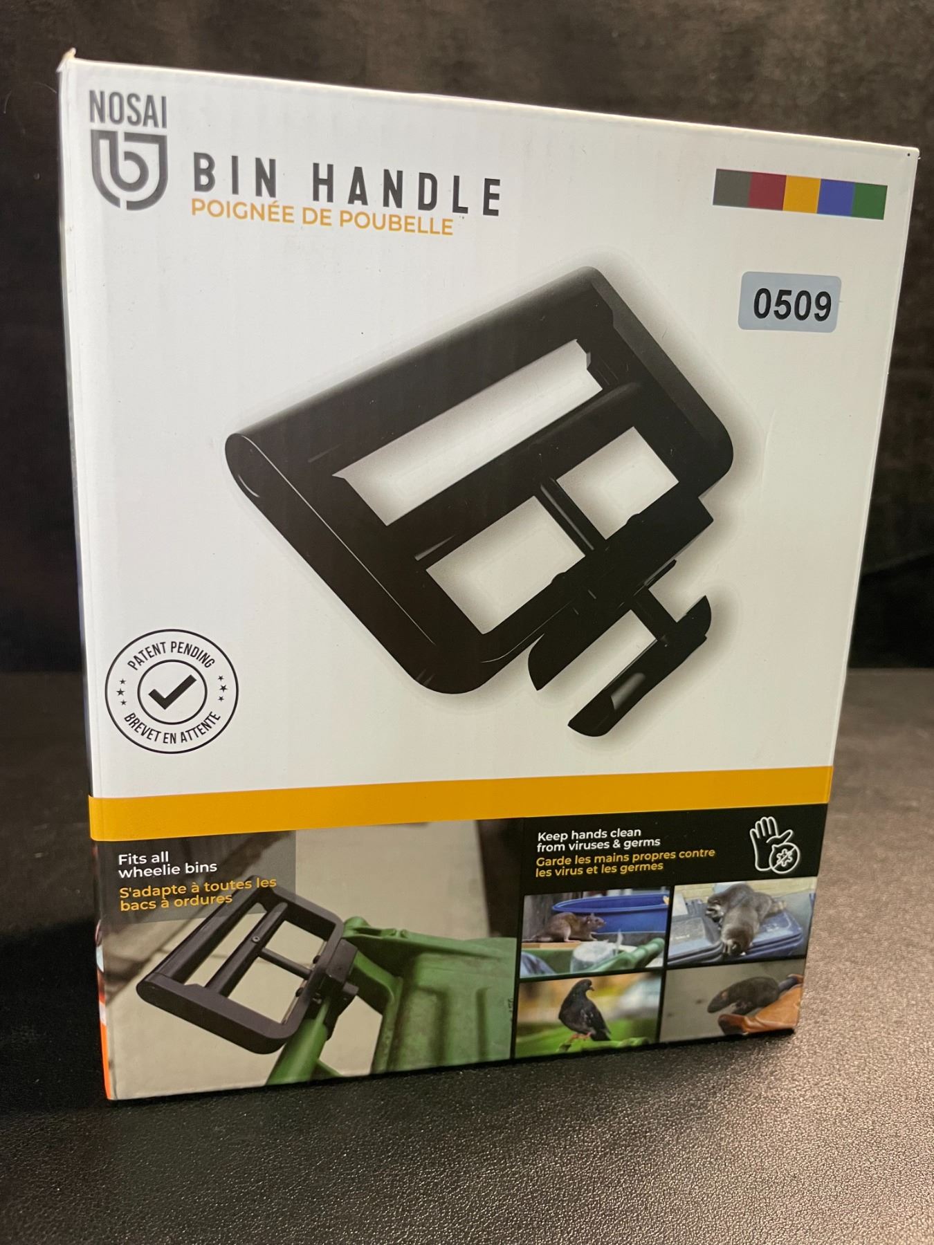 1 Nosai Garbage Bin Handle Extension for Wheelie Trash/Recycling Bins; No-Touch Handle - New