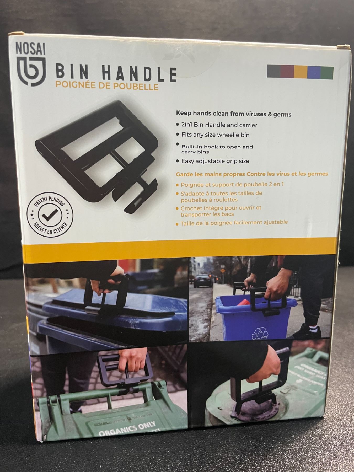 1 Nosai Garbage Bin Handle Extension for Wheelie Trash/Recycling Bins; No-Touch Handle - New