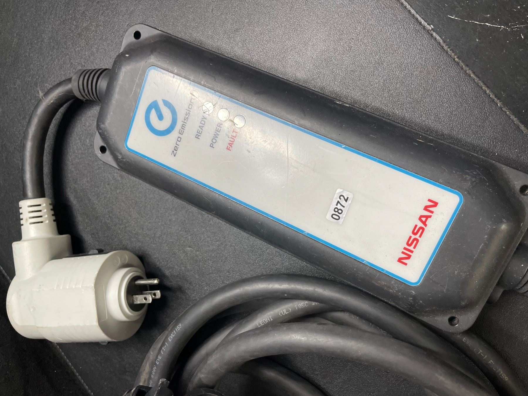 Nissan EV charger works with all standard platform J1772 charge ports as well as any tesla using the standard NACS adapter included with every tesla.