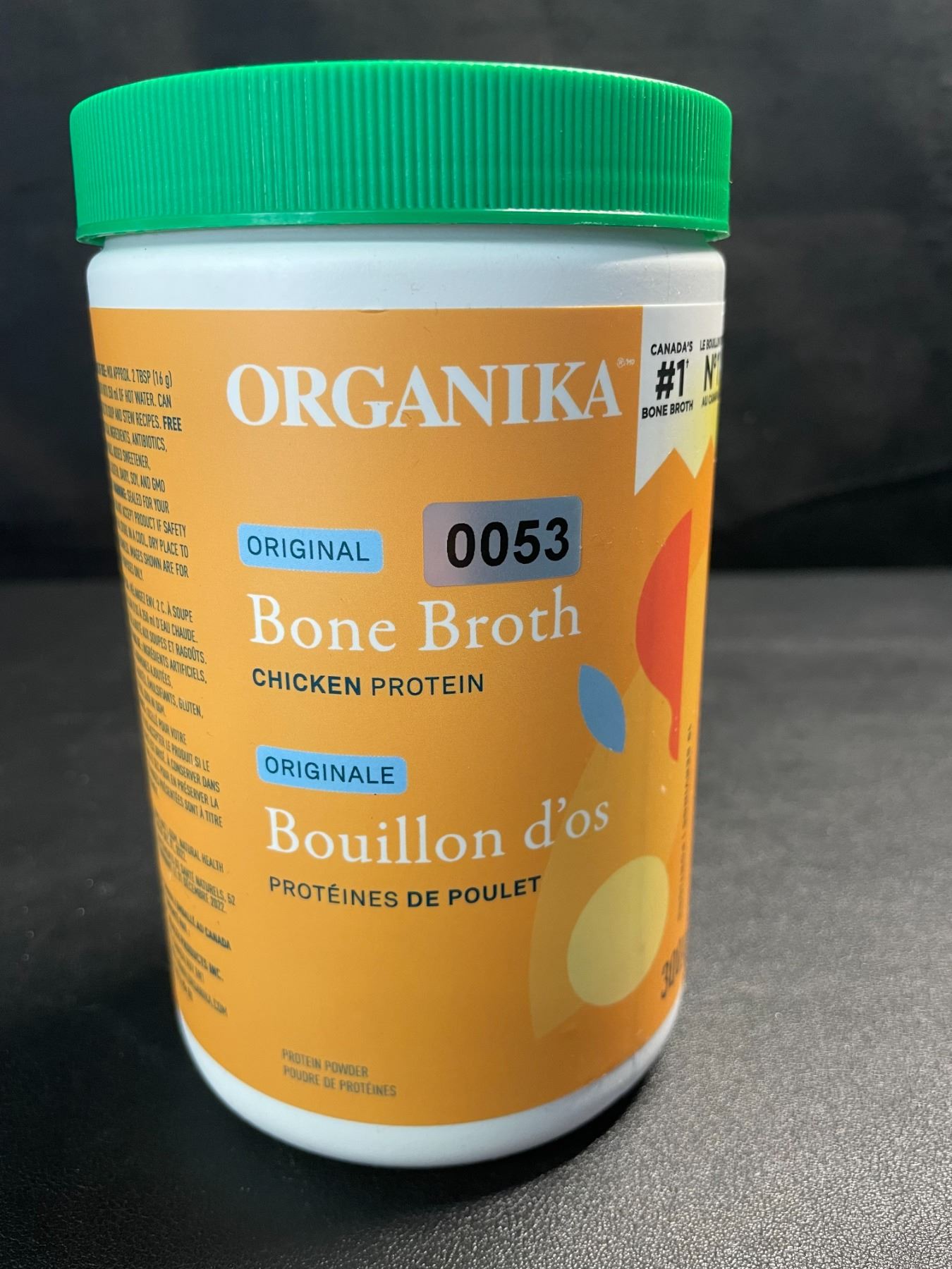 - Organika Canadian-Made Chicken Bone Broth Powder - 15g Protein Per Serving, Low-Sodium, Mineral-Rich, Convenient Powder Format, Easily Add to Recipes Non-GMO and Organic Vegetarian Fed-Chickens - 300g