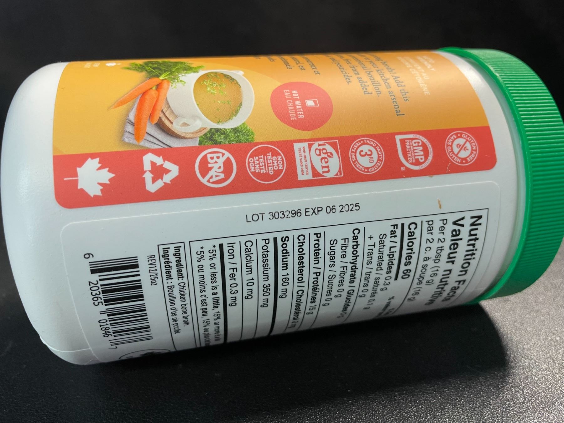 - Organika Canadian-Made Chicken Bone Broth Powder - 15g Protein Per Serving, Low-Sodium, Mineral-Rich, Convenient Powder Format, Easily Add to Recipes Non-GMO and Organic Vegetarian Fed-Chickens - 300g
