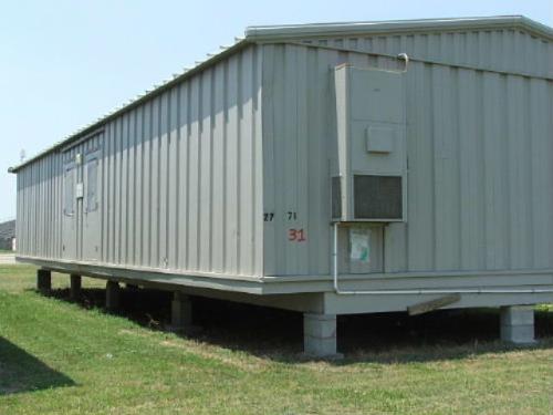 (1) PORTABLE CLASSROOM, APROX. SIZE: 56' X 24', WOOD SKID, METAL SIDING, METAL ROOF, (2) BARD A/C HEAT UNITS, ENTRY ON ONE SIDE, (2) CLASSROOMS, EACH ROOM HAS DOOR ENTRY. (ALL PORTABLE CLASSROOMS MAY HAVE HOLES IN WALLS, NEED FLOOR REPAIR OR EXTERIOR REPAIR, AUCTIONEER AND SBISD RECOMMEND BUYERS INSPECT EACH BUILDING ON APPOINTED PREVIEW TIMES.)