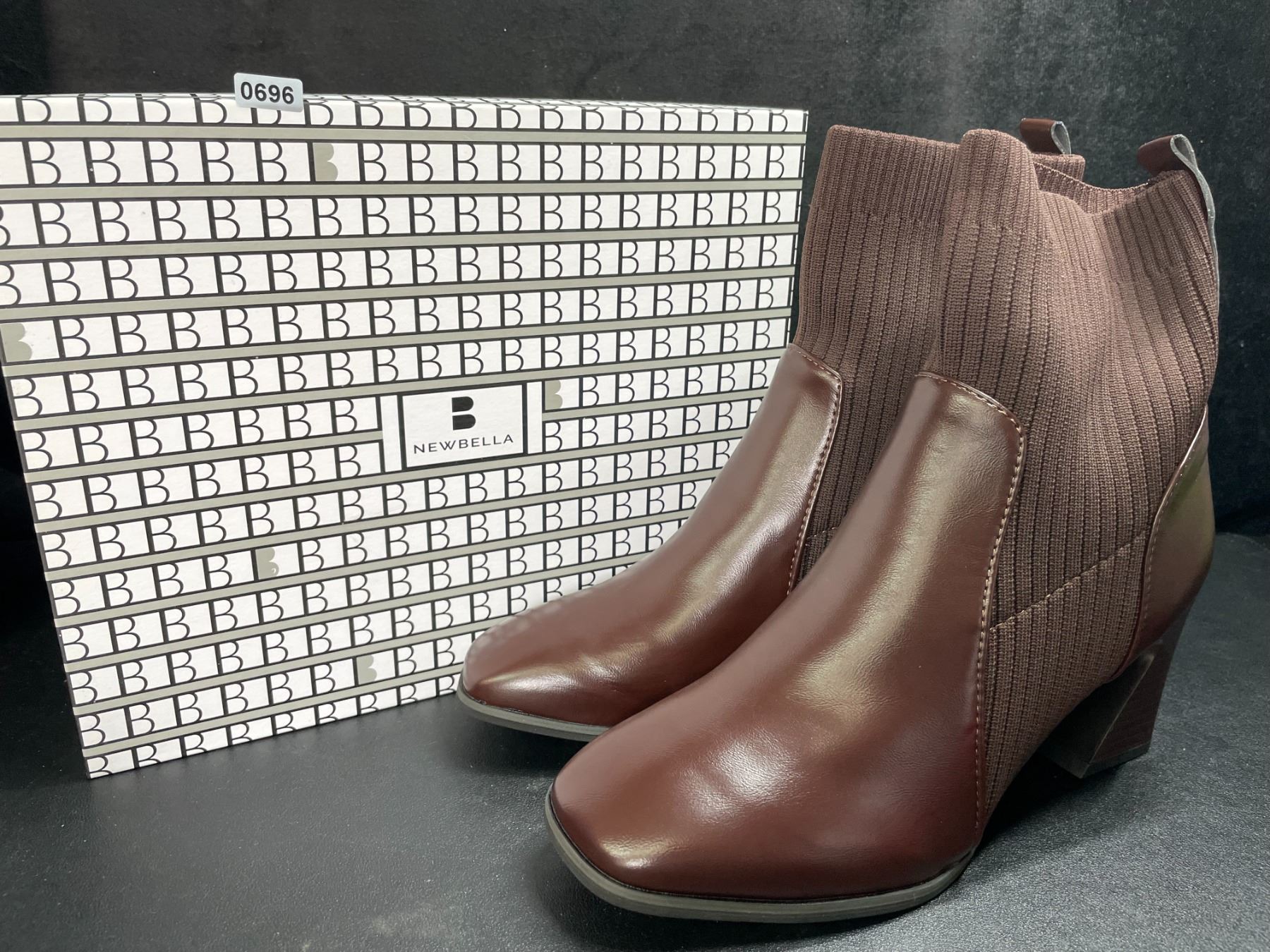 NEWBELLA Women's Chunky Heel Boots, British Style Lug Sole Booties, Elastic Slip-on