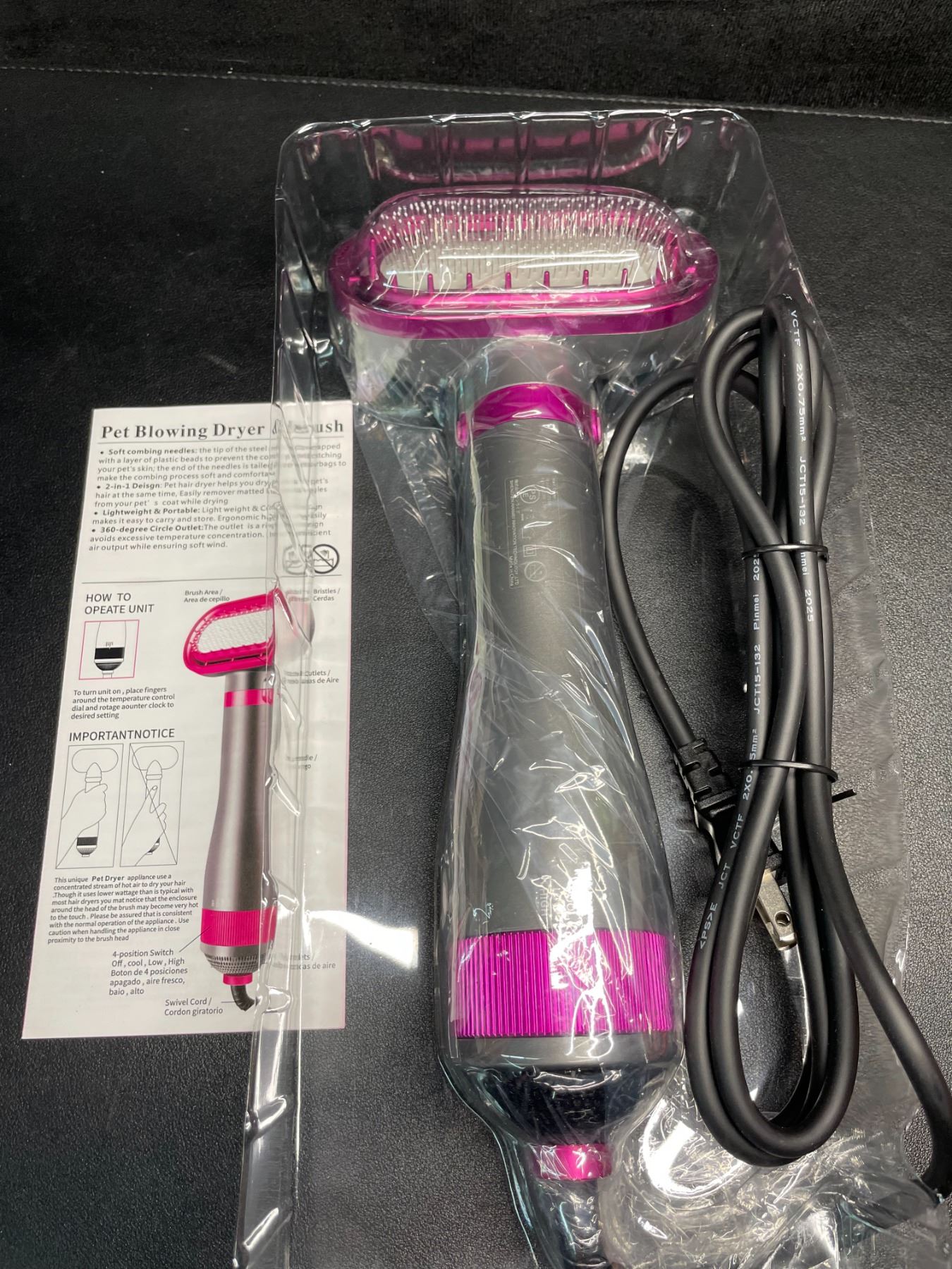- Pet grooming brush/blow dryer - dry while grooming!