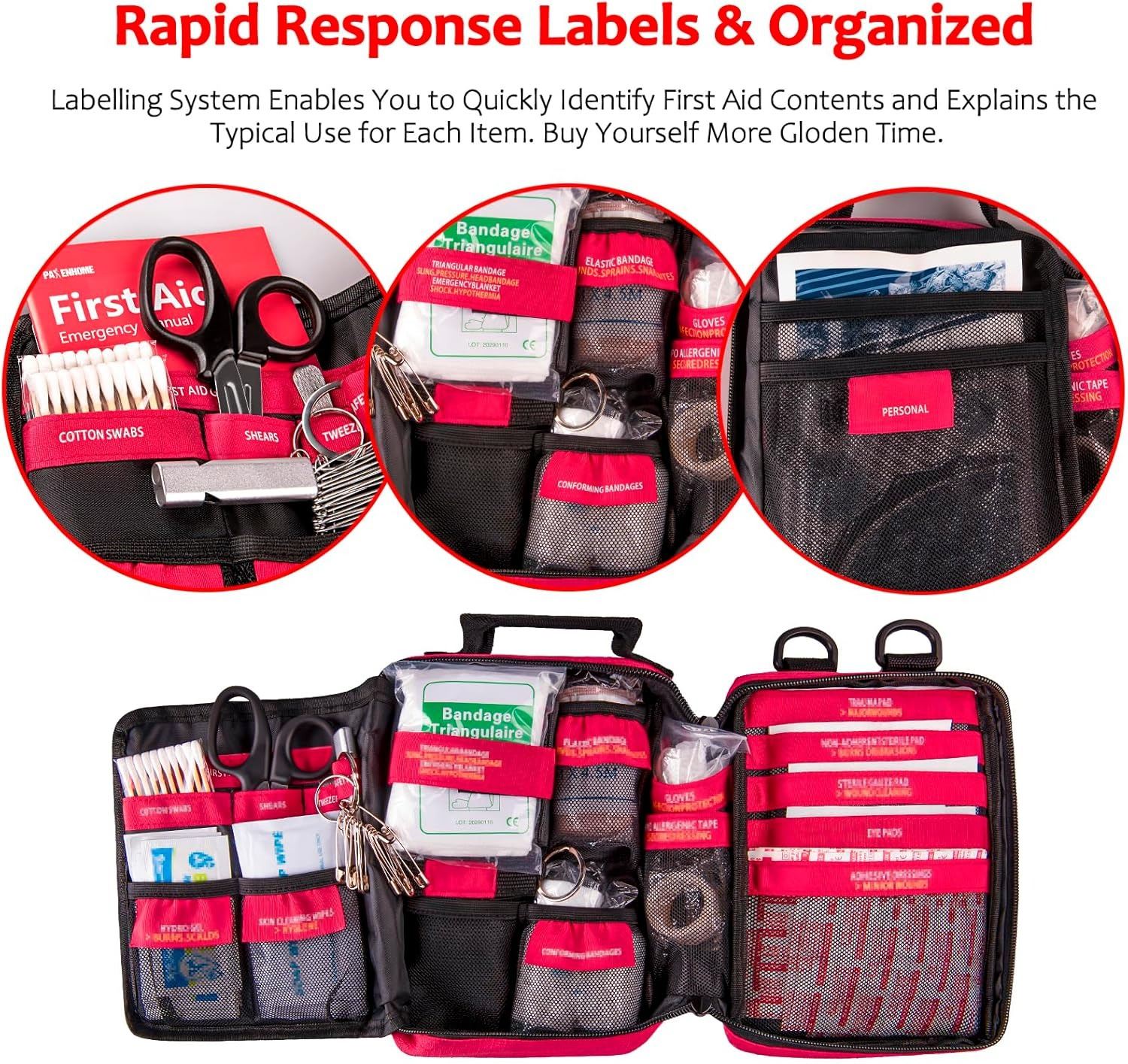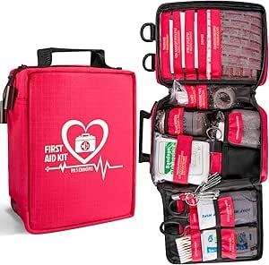Pasenhome First Aid Kit, Emergency Kit with Labelled Compartments for Home, Camping, Car, Office, Outdoor, Hiking, Travel