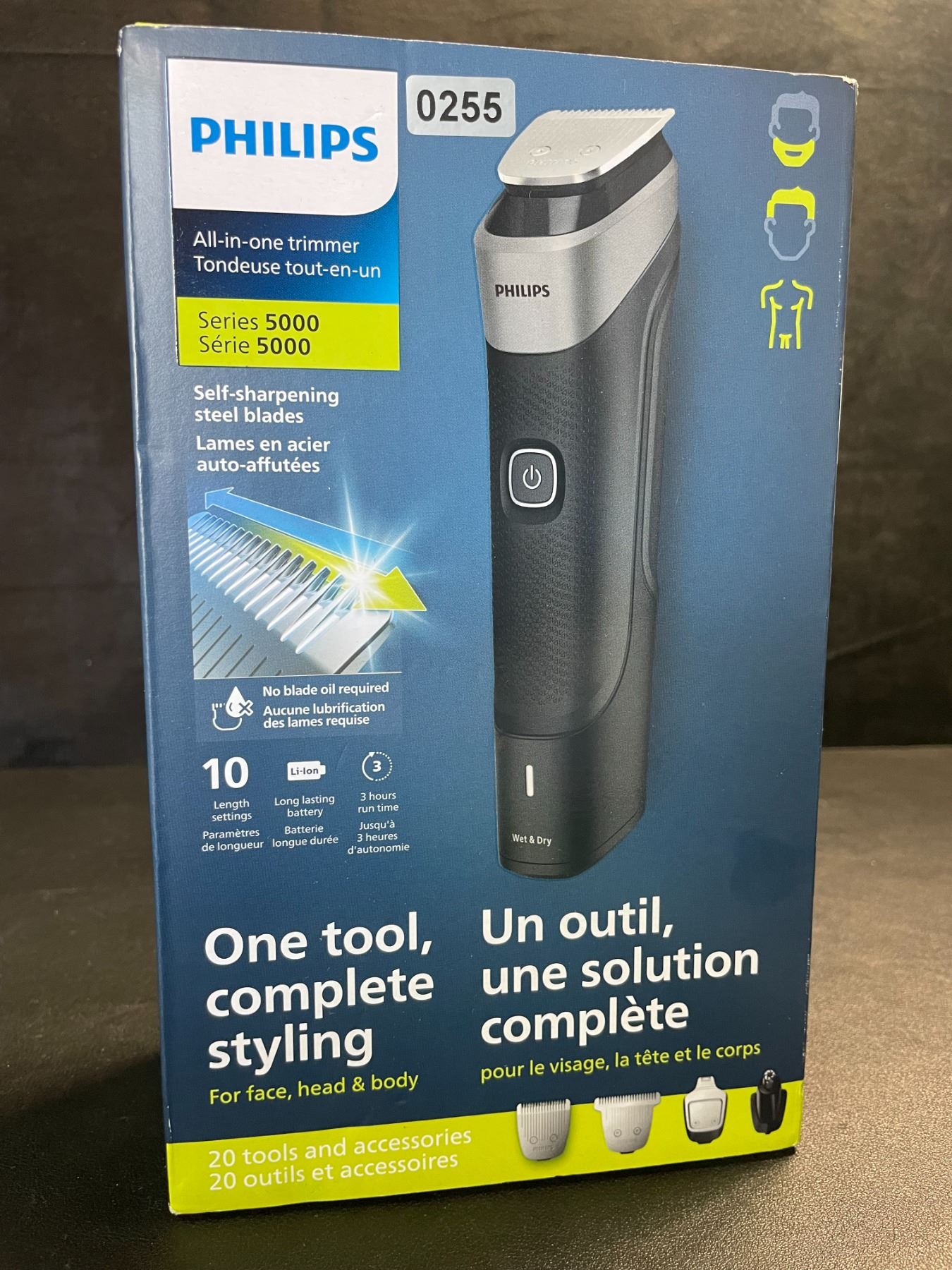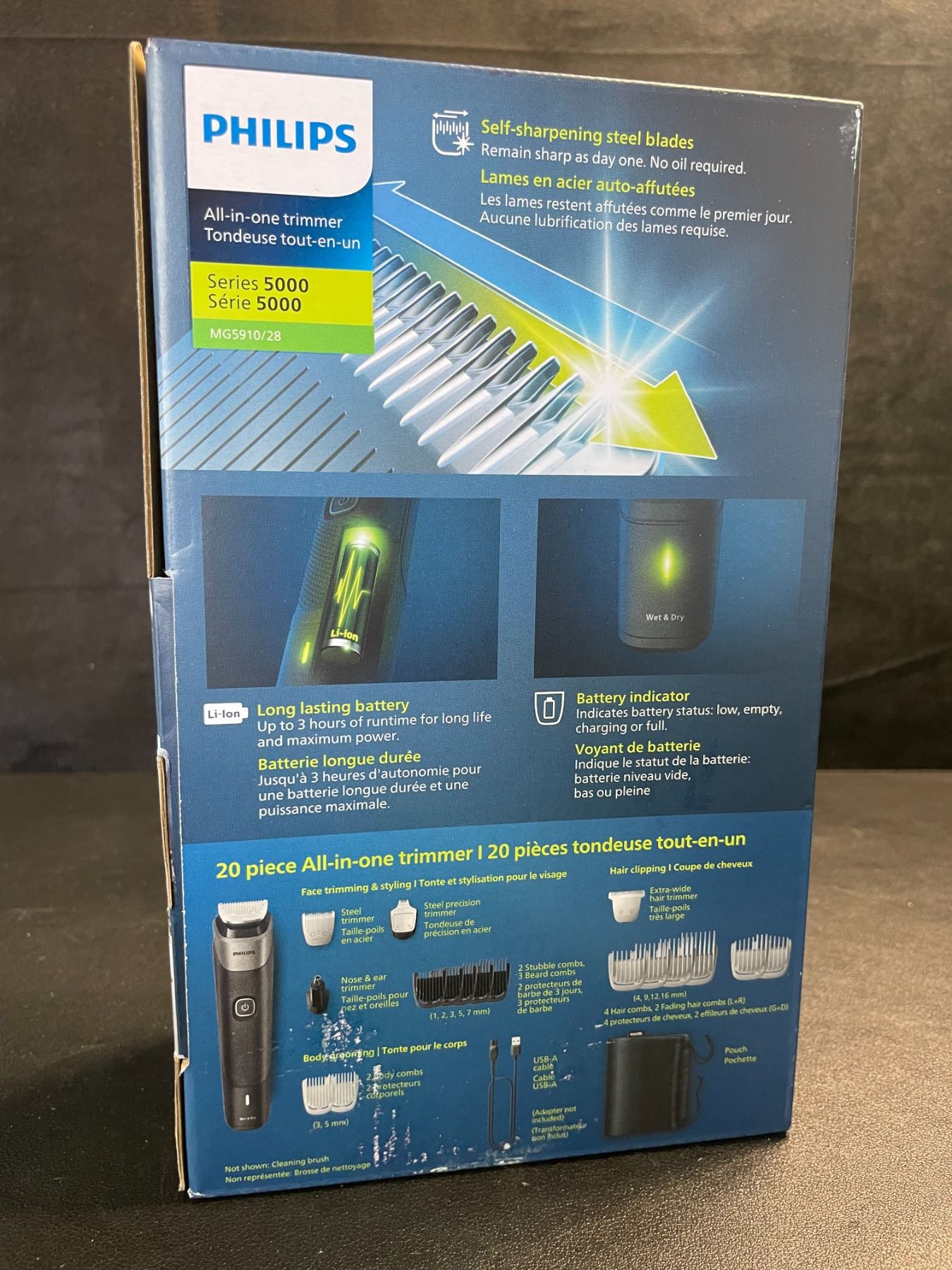 - Philips Multi Groomer All-in-One Trimmer Series 5000, Mens Grooming Kit with Trimmer for Beard, Head, Hair, Body, Groin, Nose and Face, NO Blade Oil Needed