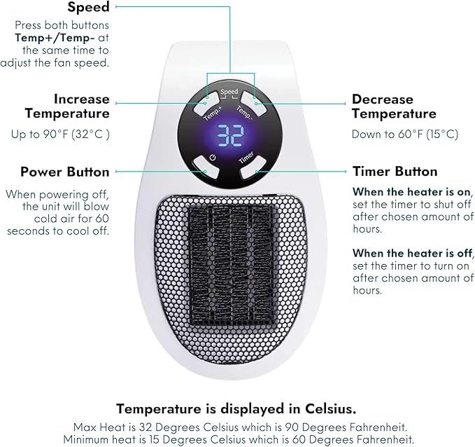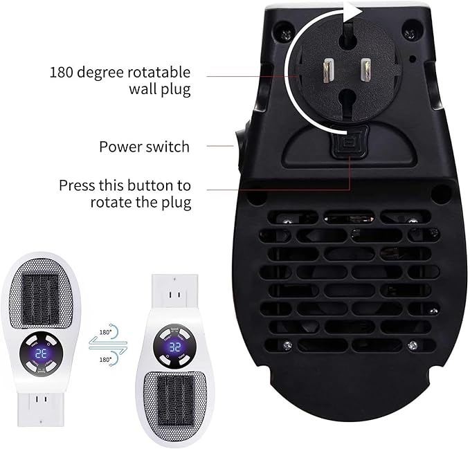 1 Portable Electric 500W Socket Plug-In Heater w/ LED Display - New