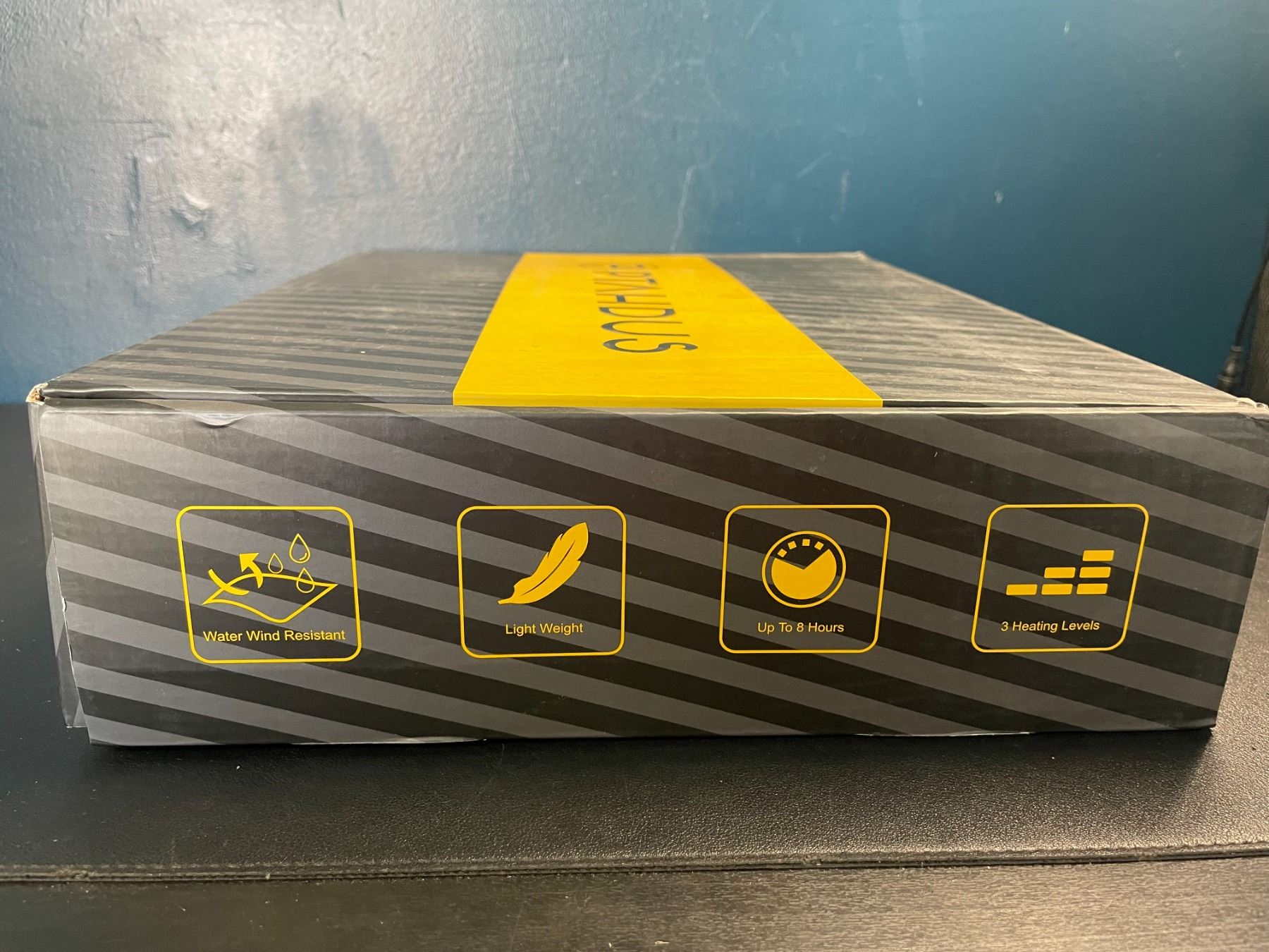 - 3 heating levels, up to 8hrs of continuous use per charge