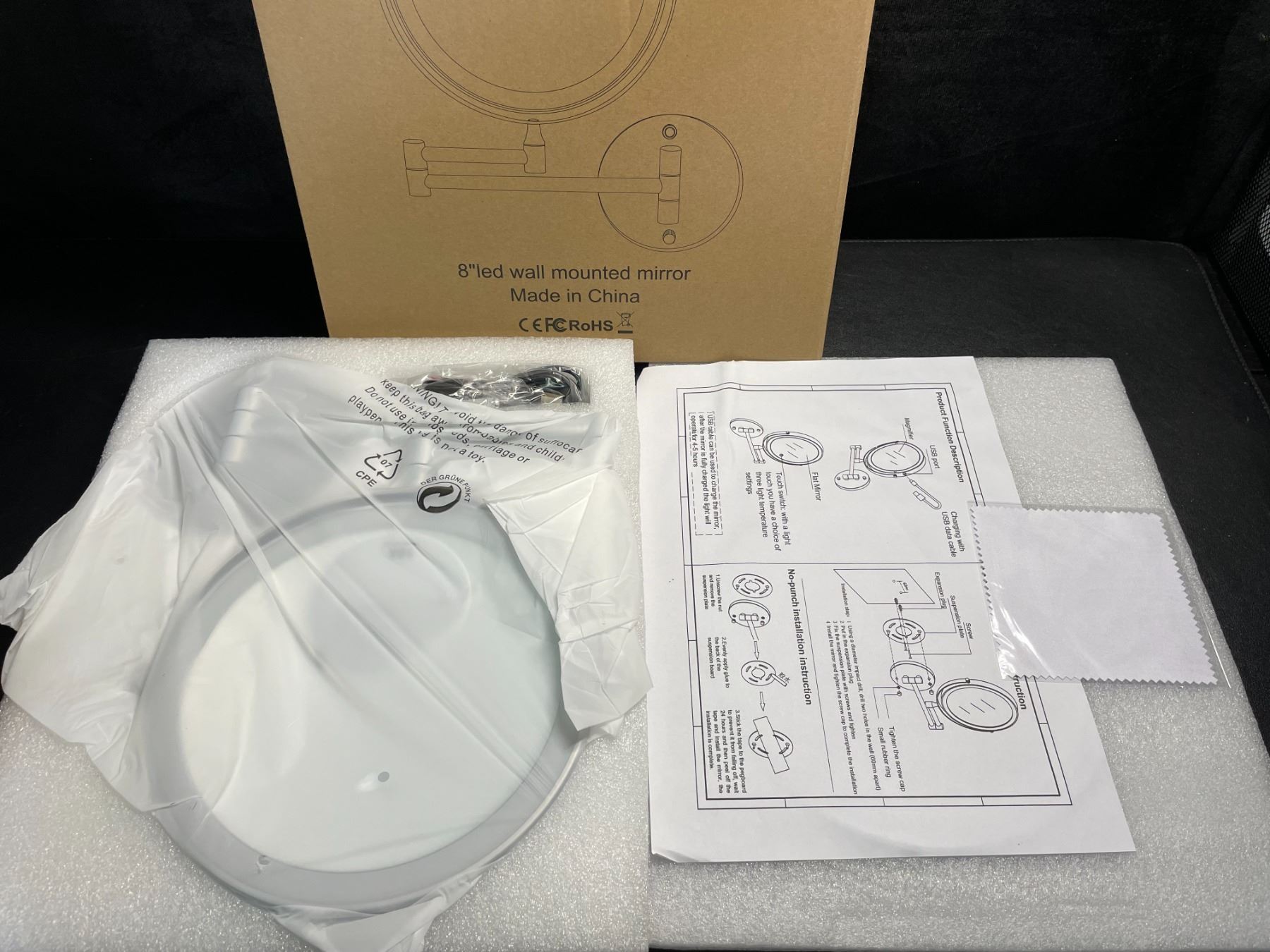 - Rechargeable Lighted Wall Mounted Makeup Mirror, 8" Double-Sided 1X/10X Magnifying Bathroom Mirror with 3 Color Lighting, Touch Screen Dimmable 360° Swivel 13 Inch Extendable Chrome Vanity Mirror