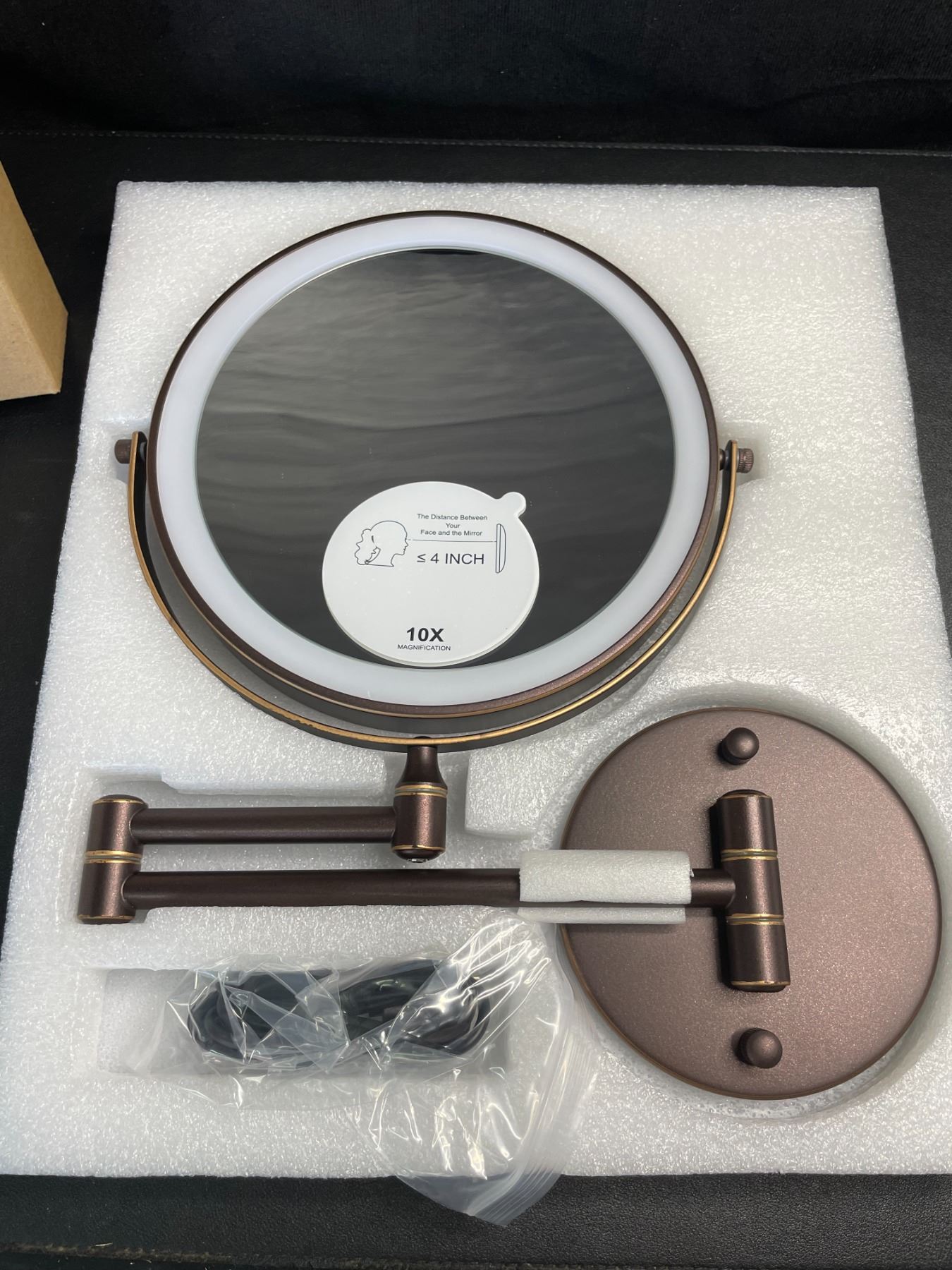 - Rechargeable Lighted Wall Mounted Makeup Mirror, 8" Double-Sided 1X/10X Magnifying Bathroom Mirror with 3 Color Lighting, Touch Screen Dimmable 360° Swivel 13 Inch Extendable Vanity Mirror