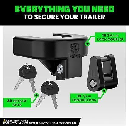 - rhino usa trailer hitch lock kit (for 2-5/16" trailers) heavy duty anti theft trailer coupler locks for rv, camper, trailer, boat, caravan - reinforced solid steel tow lock for trailer tongue