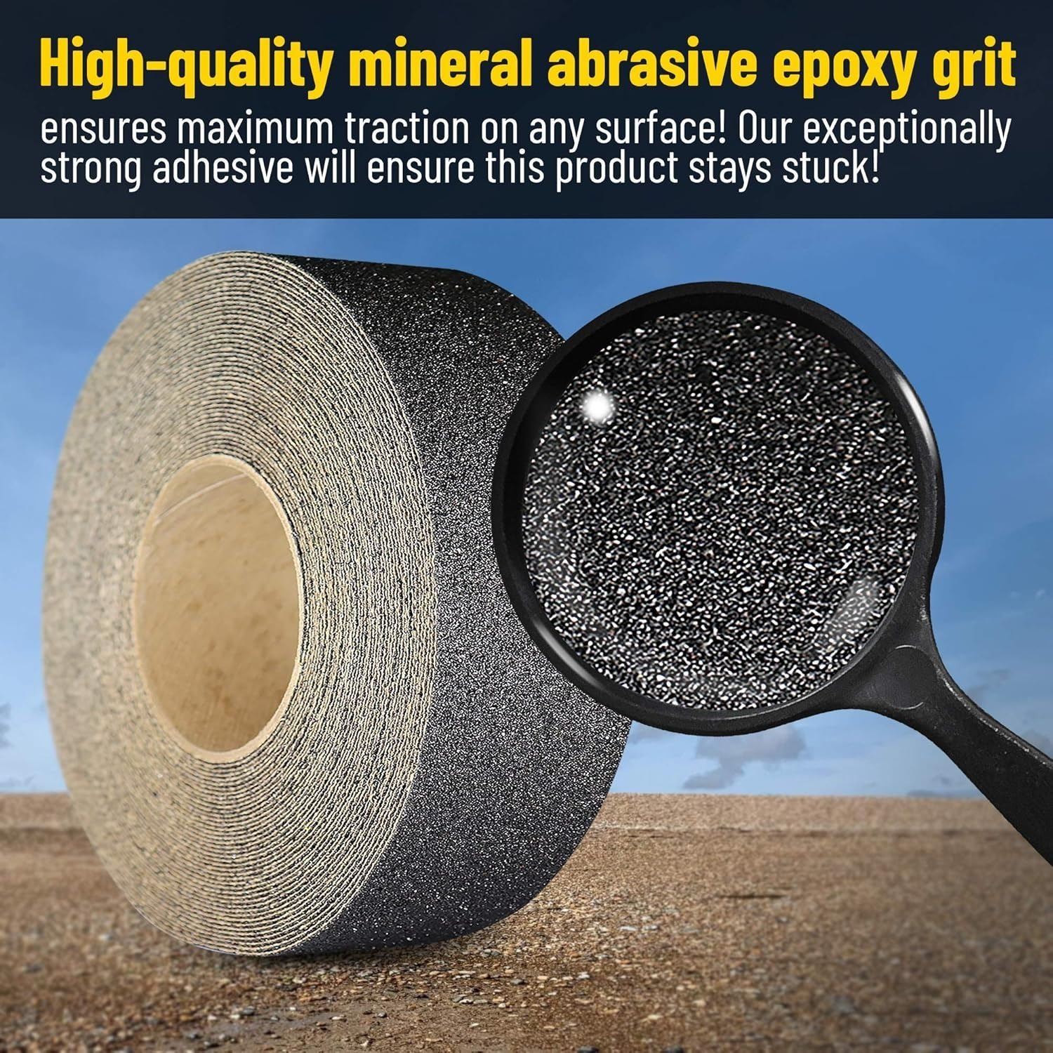 anti slip tape skid-proof adhesive black roll (4" x 15 ft) skid guard no more slipping safety foot grip tape, indoor and outdoor waterproof and super sticky