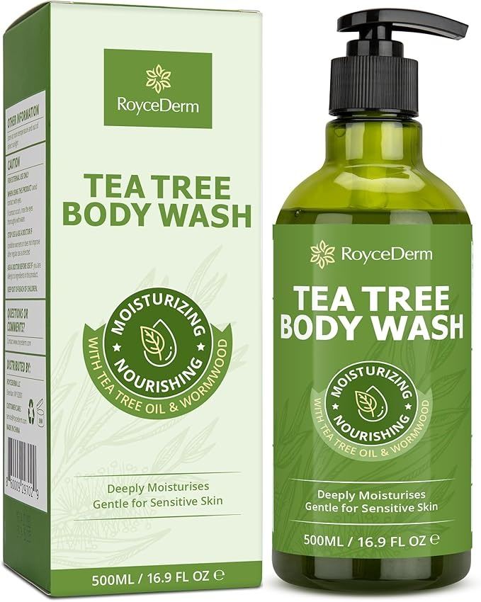 - RoyceDerm Tea Tree Antifungal Body Wash & Soap for Daily Cleansing – Refreshing & Nourishing Shower Gel for Men & Women – Gentle Lather for a Clean, Fresh Feel (16.9 fl oz)