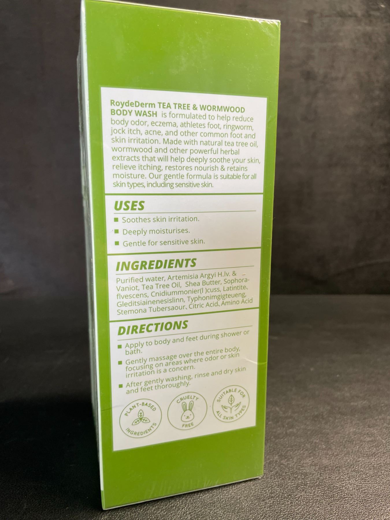 - Gentle and Refreshing Cleansing: Experience the revitalizing power of Roycederm’s body wash, enriched with tea tree oil and wormwood. This naturally inspired formula provides a refreshing cleanse, leaving your skin feeling clean, soft, and nourished.