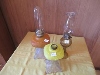 & 1 AMBER GLASS LAMP & CHIMNEY