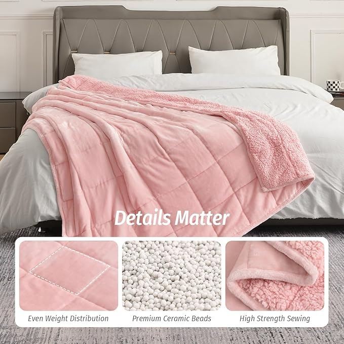 Wemore Sherpa Fleece Weighted Blanket for Adult, 15 lbs Dual Sided Cozy Fluffy Heavy Blanket, Ultra Fuzzy Throw Blanket with Soft Plush Flannel Top, 48 x 72 inches, Pink on Both Sides