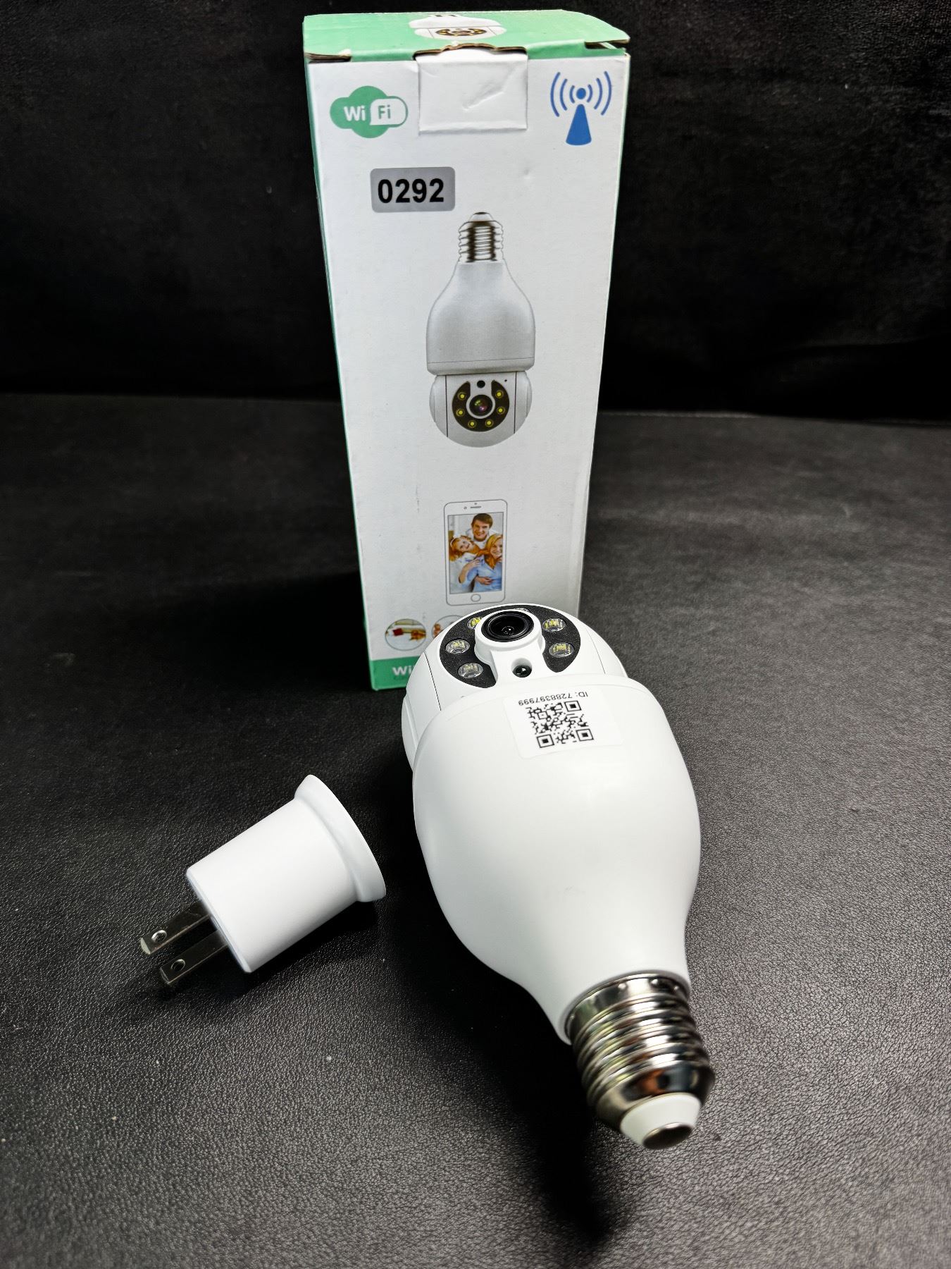 1 Smart Wifi Light Bulb Security Camera with Additional 110v Adapter - New