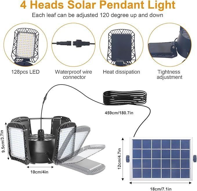 Solar Shed Deformable Light Indoor/Outdoor,1000LM 128LED Solar Pendant Light with Remote & 4 Lighting Modes, Solar Security Motion Sensor Lights for Home Yard Barn Gazebo Patio Garage IP65 Waterproof