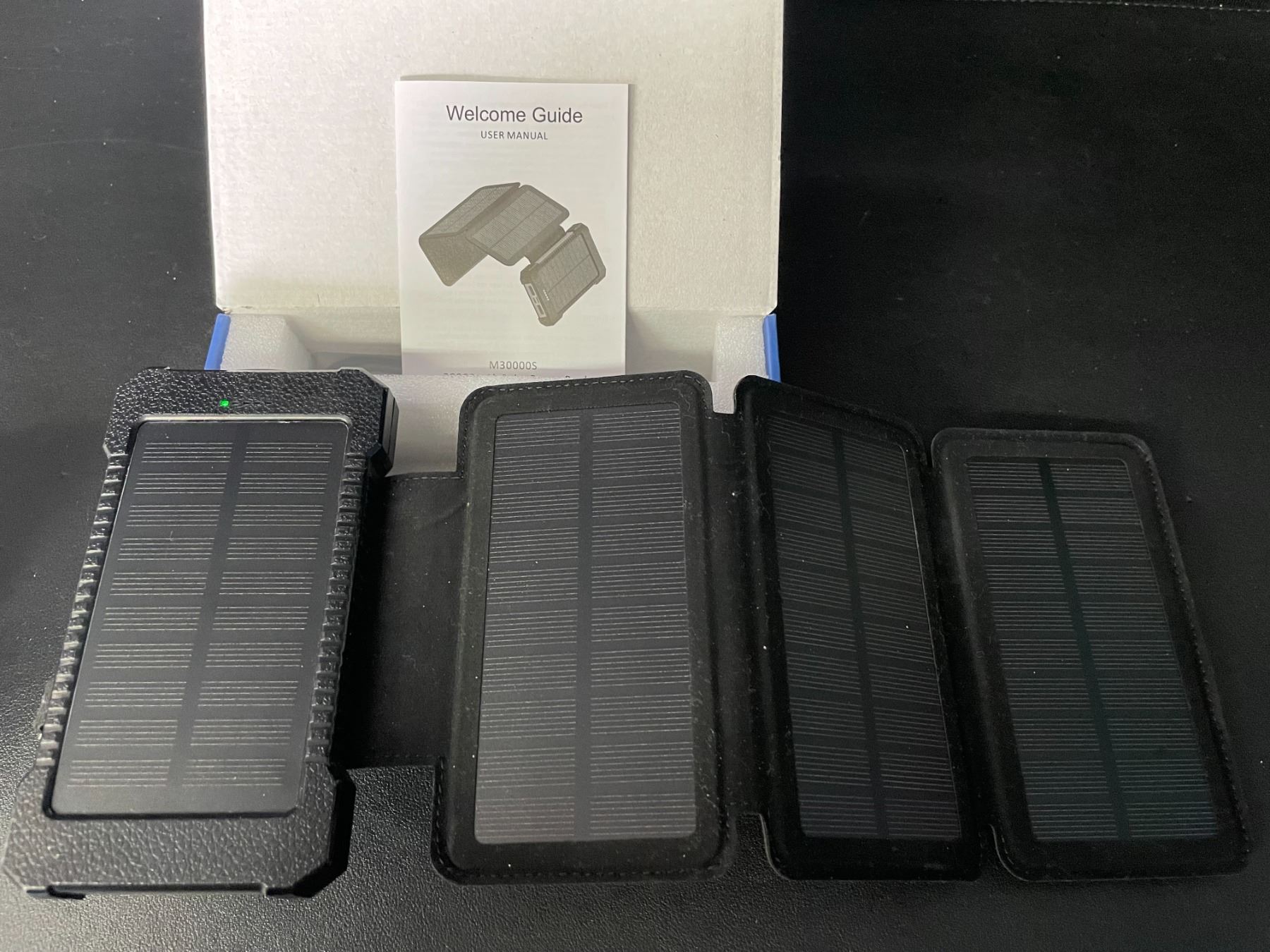 - Solar Power Bank 38800mAh Portable Solar Charger 3 Ports Power Bank External Batteries 4 Solar Panels with Flashlight Light Function