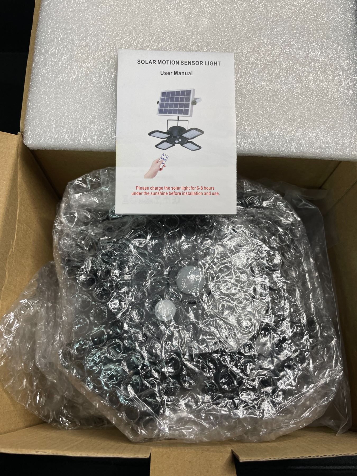 1 Solar Shed Light for Outdoors w/ Motion Sensor;1000LM, 128LED Solar Pendant Light w/ Remote - New!
