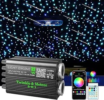 - Starlight Headliner 32W Twinkle & Meteor 2-in-1 Light Engine for Shooting Stars RGBW; *package only includes the dual-head light source; optical fibers must be purchased separately to DIY the number of stars you want