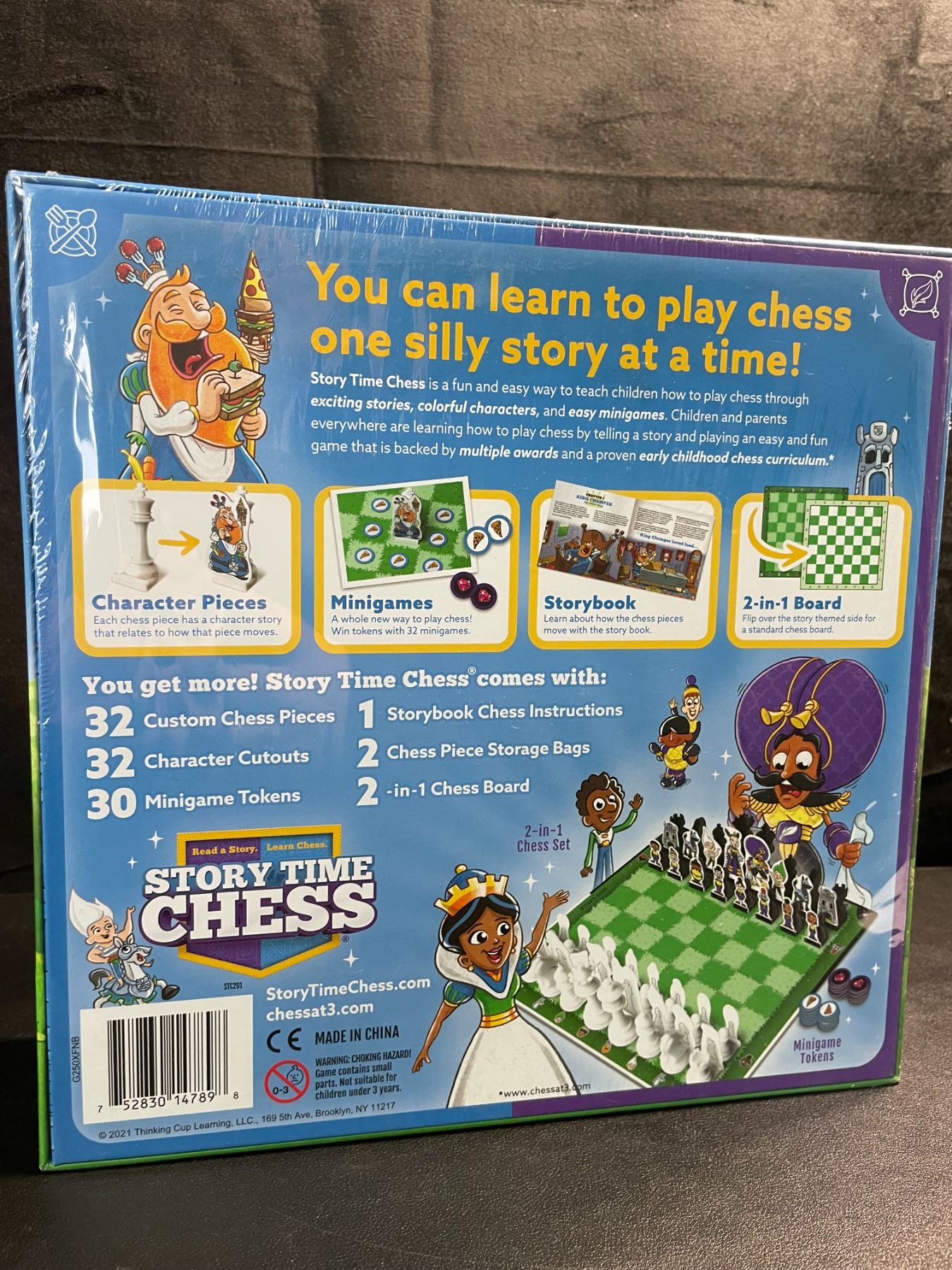 - Story Time Chess is a board game that teaches chess to young children using silly stories, vibrant illustrations, custom chess pieces, and a unique 2 sided chess board. The stories and supporting materials communicate the rules of chess to children ages 3 and up in a way that makes learning chess simple and fun. Best of all, no chess experience is required for parents or children to learn.