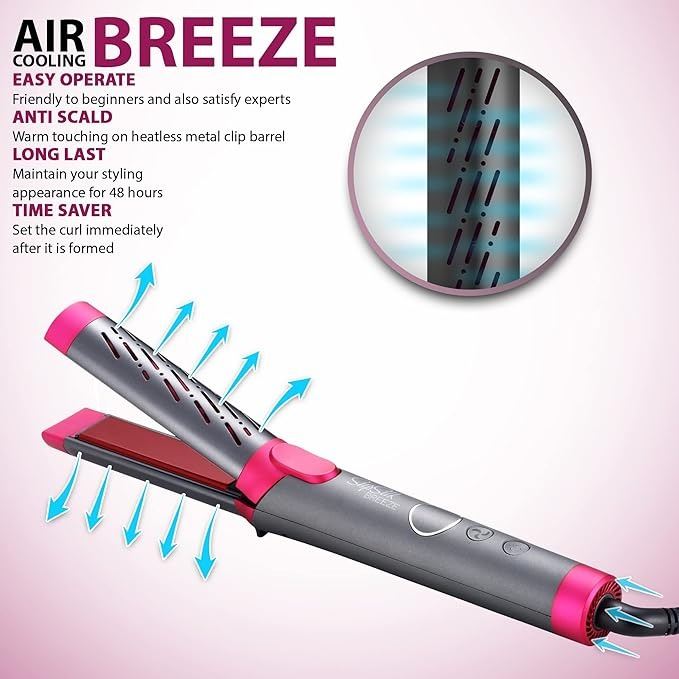 Supsilk Breeze Airflow Hair Styler, 2-in-1 Hair Straightener and Curler, Create No Damage Long Last Bouncy Curls Waves & Smooth Straight, Ceramic Tourmaline Flat Iron Curling Iron with 5 Heat Settings