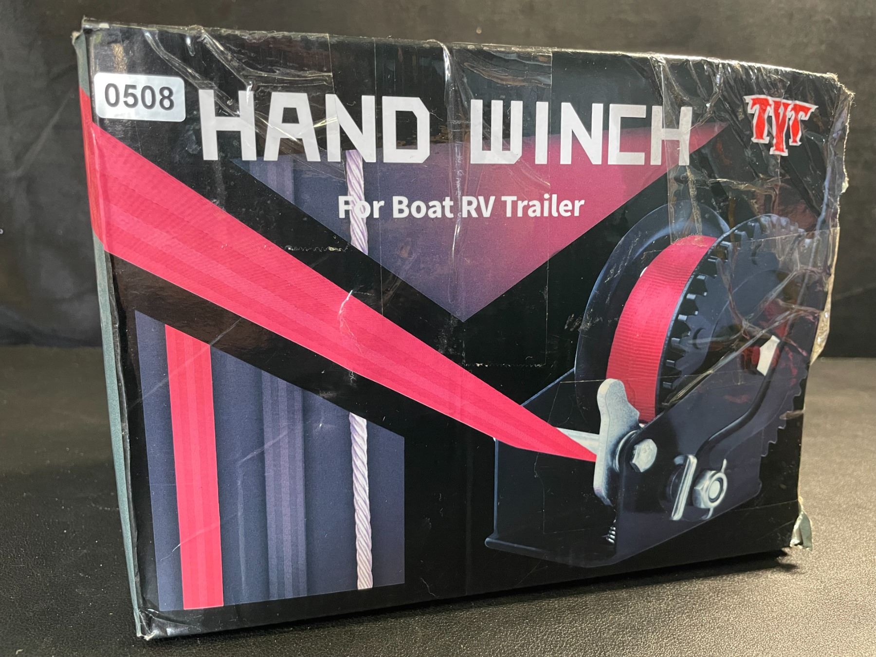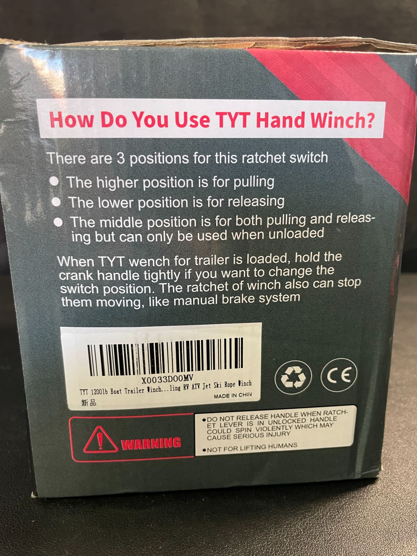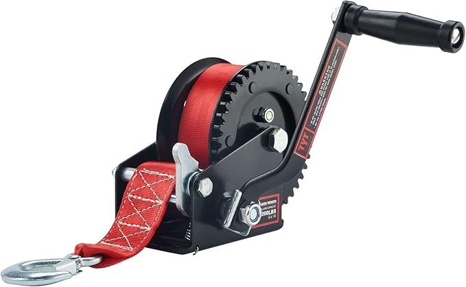 - tyt 1200lbs heavy duty boat trailer winch with 26ft red strap, 2-way ratchet & 4.1:1 gear trailer winch, portable hand crank winch for boat, truck, trailer, rv, atv, jet ski
