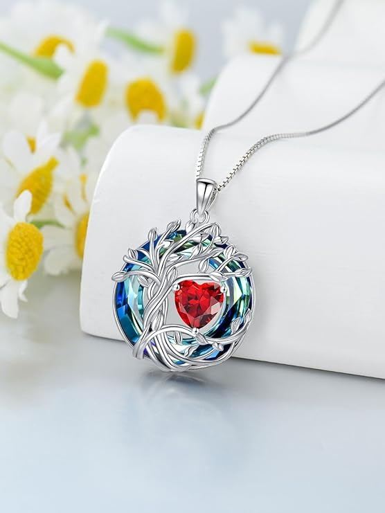 - TOUPOP Tree of Life Necklace for Women White Gold Plated 925 Sterling Silver Birthstone Pendant Necklace