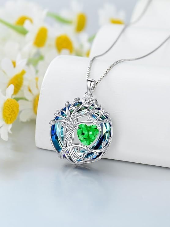 - TOUPOP Tree of Life Necklace for Women White Gold Plated 925 Sterling Silver Birthstone Pendant Necklace