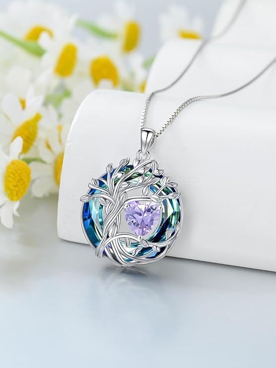 - TOUPOP Tree of Life Necklace for Women White Gold Plated 925 Sterling Silver Birthstone Pendant Necklace