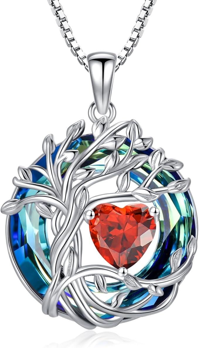 - TOUPOP Tree of Life Necklace for Women White Gold Plated 925 Sterling Silver Birthstone Pendant Necklace
