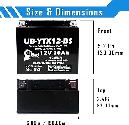 - Factory Activated, Maintenance Free, Motorcycle Battery - 12V, 10Ah