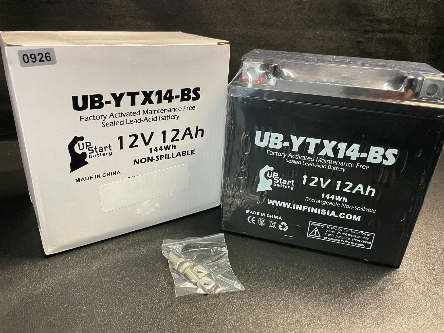 - YTX14-BS Battery - Motorcycle Battery, ATV Battery 12V 12AH, UTV, 4 Wheeler, Snowmobile, Powersports Batteries - Compatible with Honda Rancher 350, Buell Blast, Yamaha - Sealed Lead Acid 12 Volt AGM