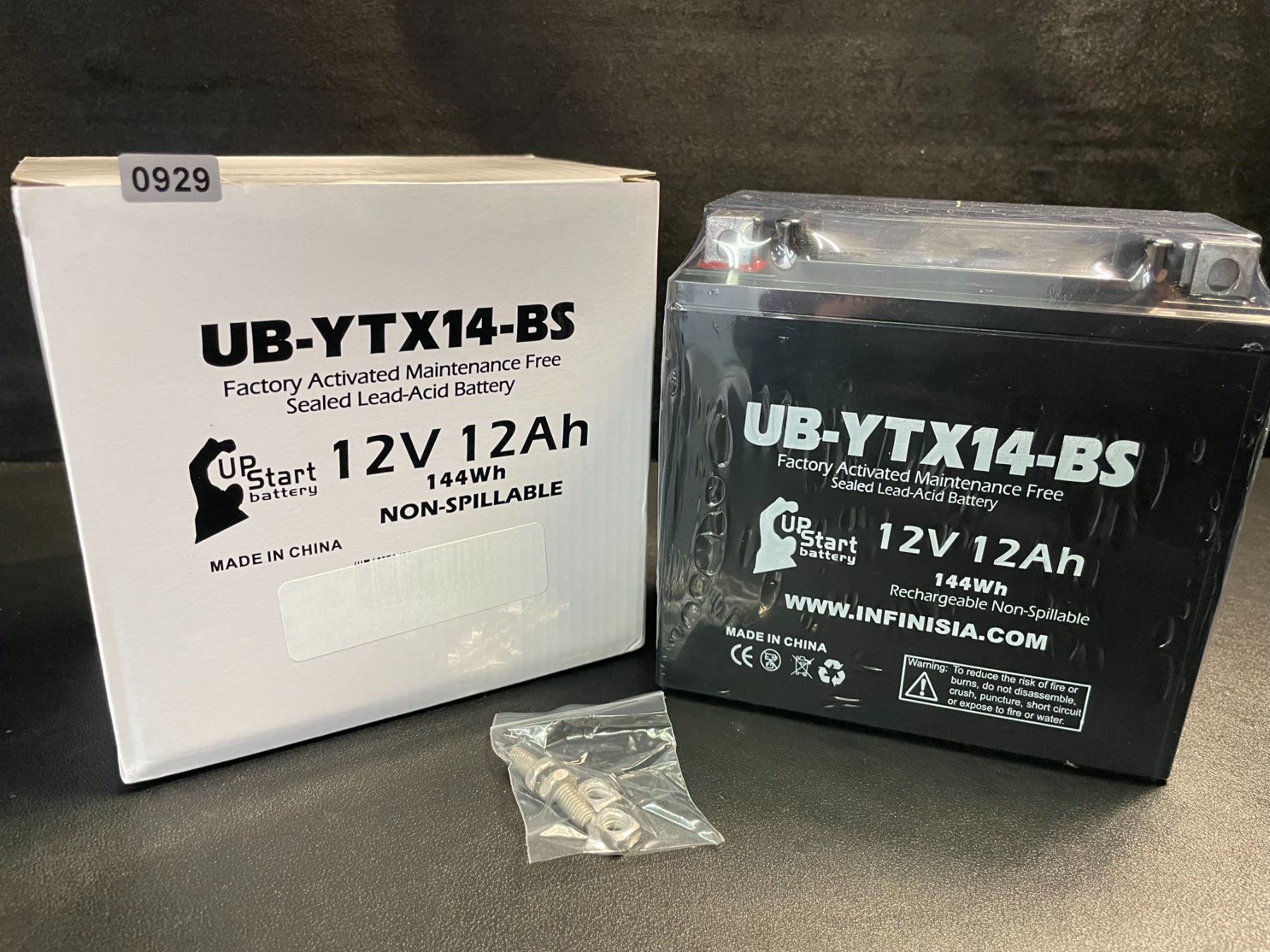- YTX14-BS Battery - Motorcycle Battery, ATV Battery 12V 12AH, UTV, 4 Wheeler, Snowmobile, Powersports Batteries - Compatible with Honda Rancher 350, Buell Blast, Yamaha - Sealed Lead Acid 12 Volt AGM