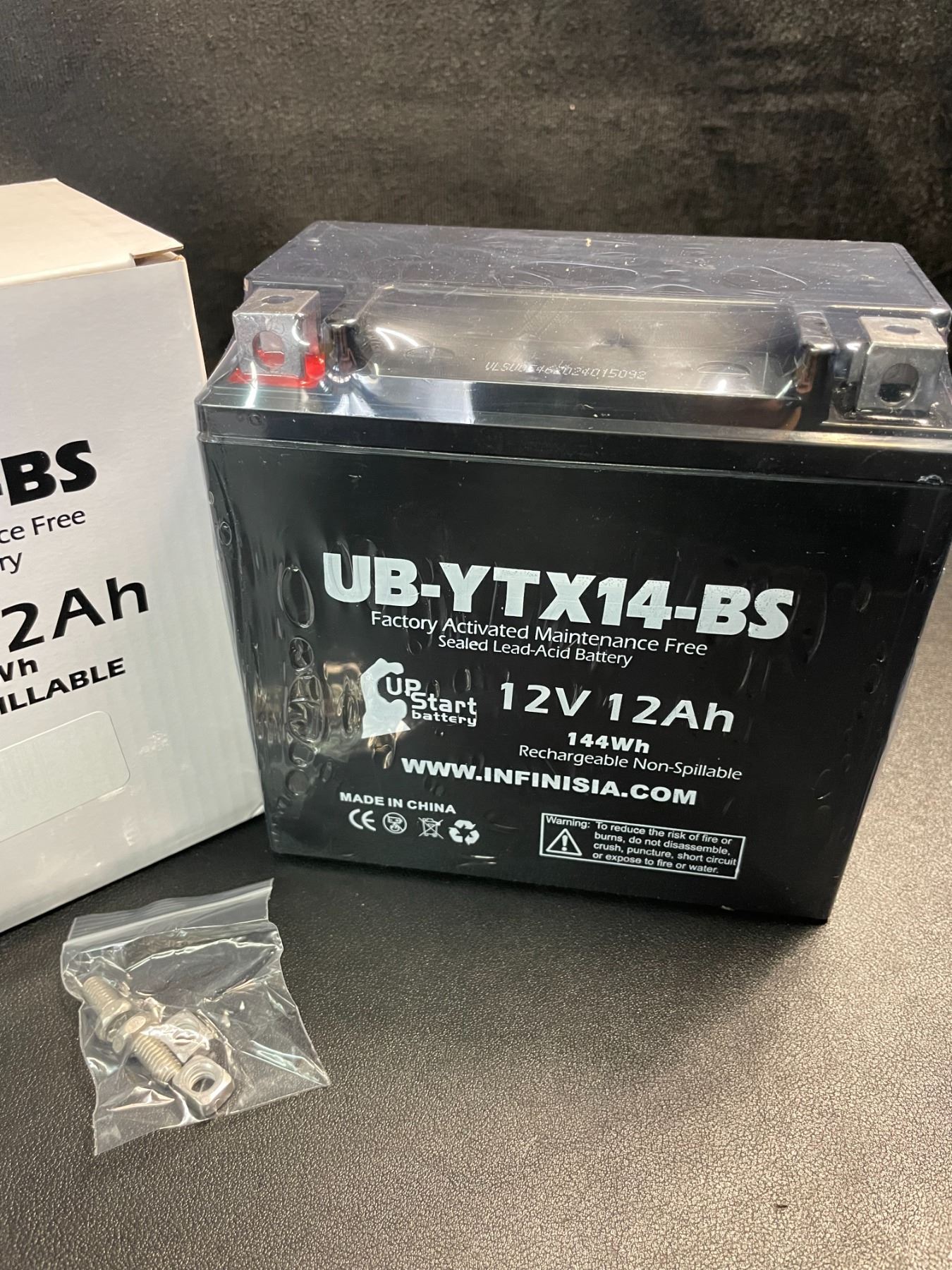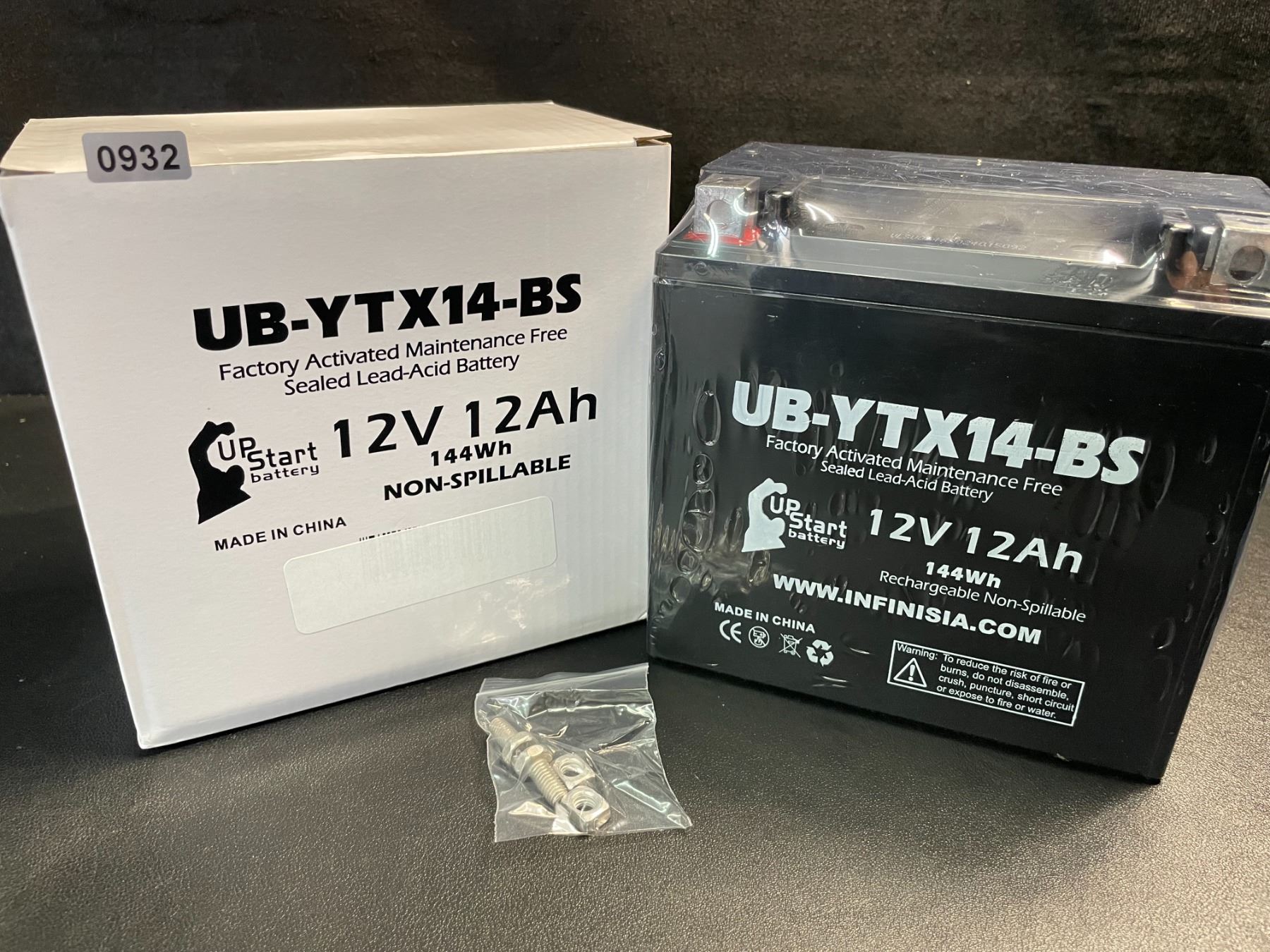 - YTX14-BS Battery - Motorcycle Battery, ATV Battery 12V 12AH, UTV, 4 Wheeler, Snowmobile, Powersports Batteries - Compatible with Honda Rancher 350, Buell Blast, Yamaha - Sealed Lead Acid 12 Volt AGM