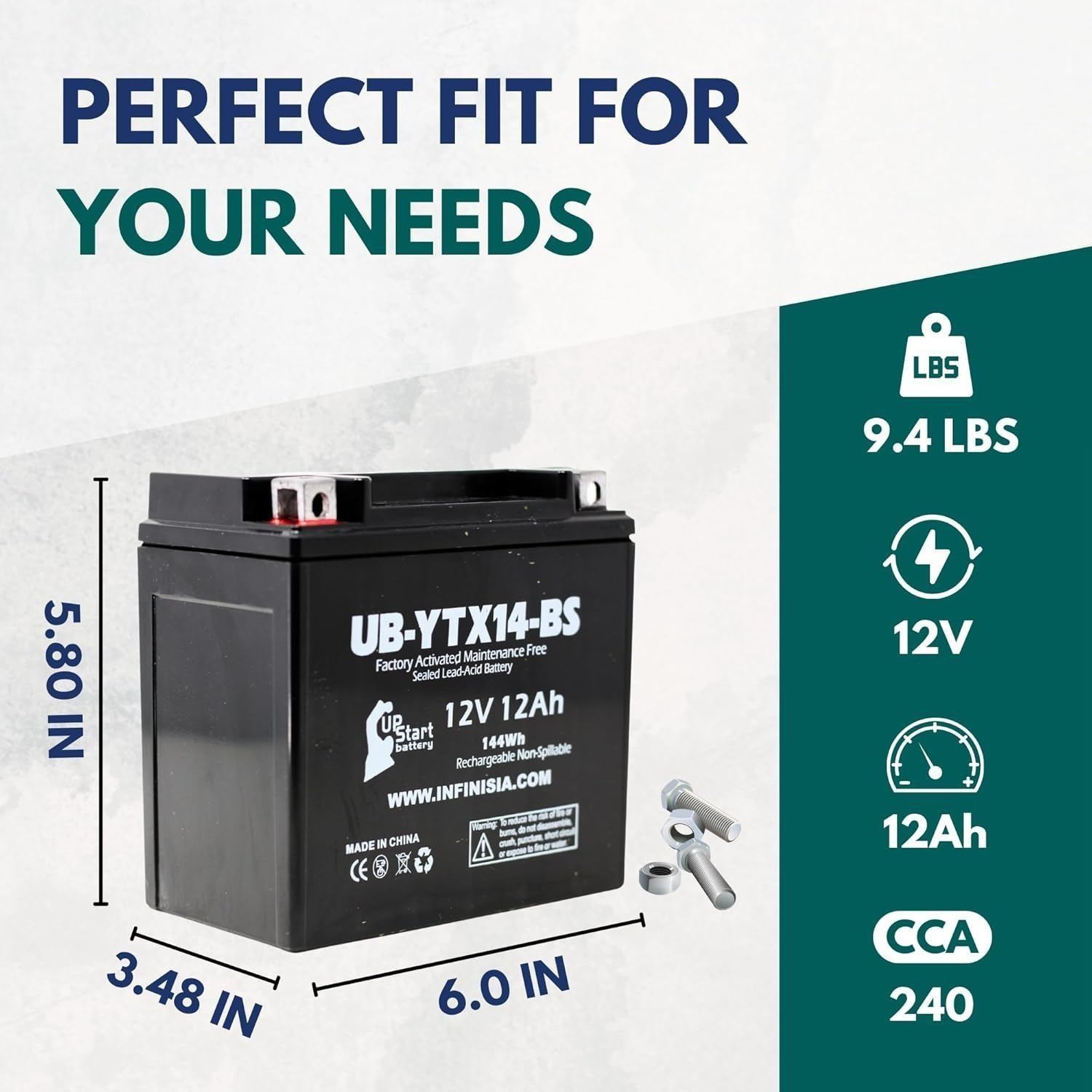 - YTX14-BS Battery - Motorcycle Battery, ATV Battery 12V 12Ah, UTV, 4 Wheeler, Snowmobile, Powersports Battery