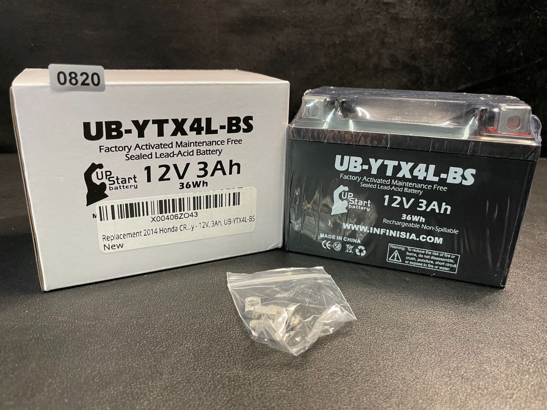 - Replacement 2014 Honda CRF110F 110CC Factory Activated, Maintenance Free, Motorcycle Battery - 12V, 3Ah, Model: UB-YTX4L-BS