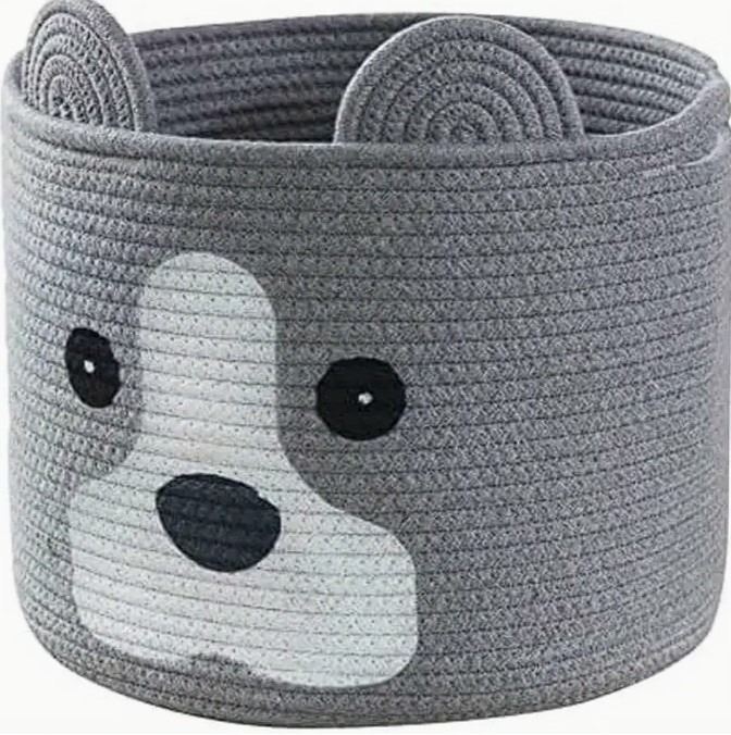 1 Woven Cotton Rope Toy Storage Basket/Toy Organizer - Dog Design - 12  x 12  Size - New