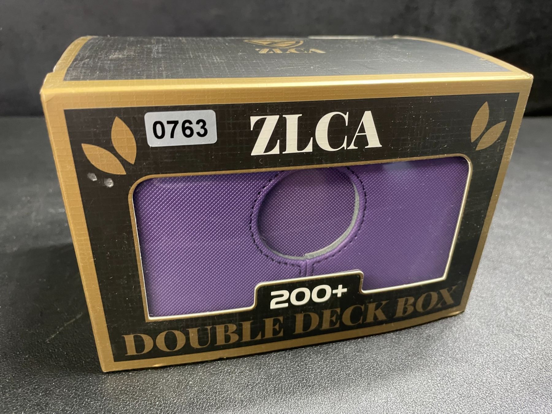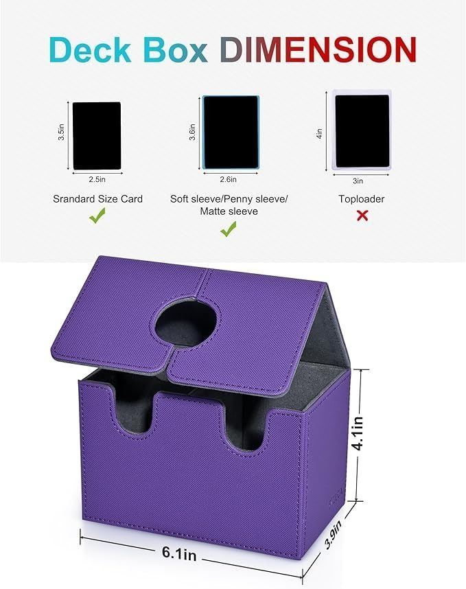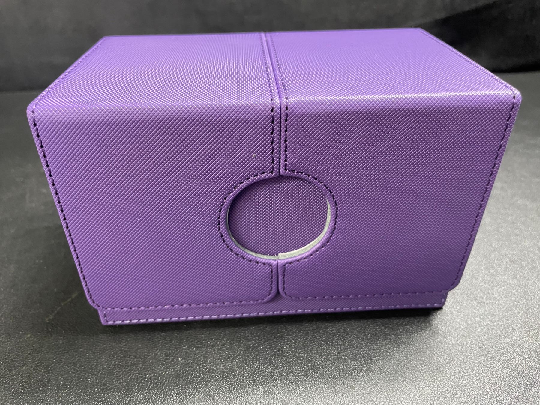 ZLCA Card Deck Box with Dice Tray for MTG Cards, 200+ Card Storage Box Fits for TCG CCG, PU Leather Strong Magnet Collectible Card Case (Purple)
