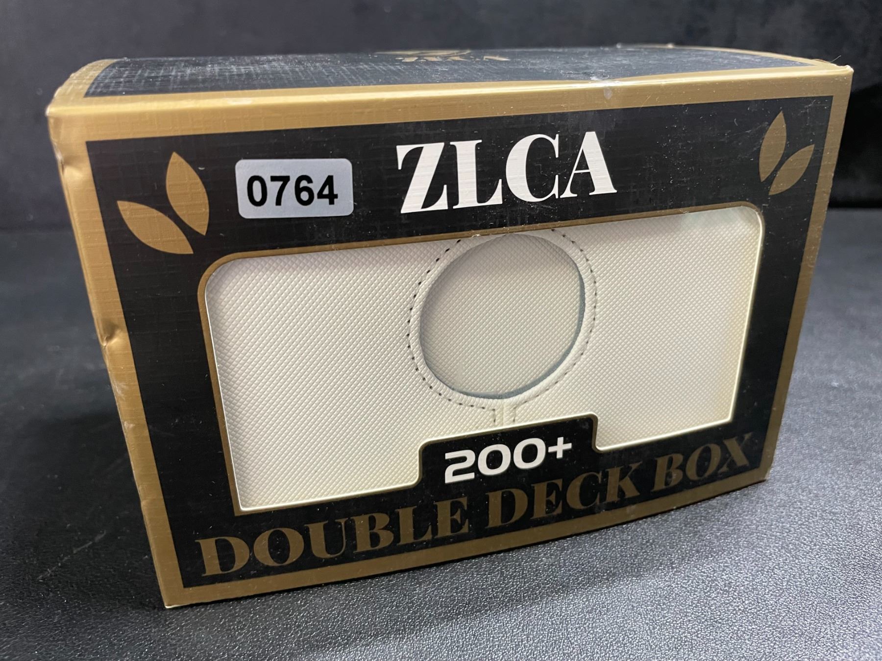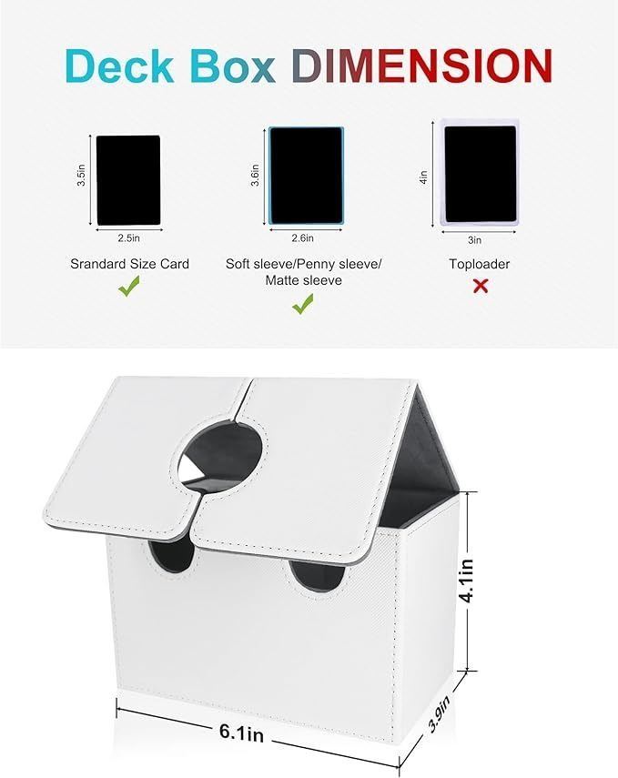 ZLCA Card Deck Box with Dice Tray for MTG Cards, 200+ Card Storage Box Fits for TCG CCG, PU Leather Strong Magnet Collectible Card Case (White)