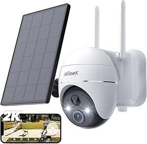 - Solar Security Camera Outdoor, ieGeek 2K Camera Surveillance Exterieur, 360°PTZ Wireless Battery Home Security Camera with AI Motion Sensor, Light&Smart Siren, 3MP Color Night vision, Works with Alexa
