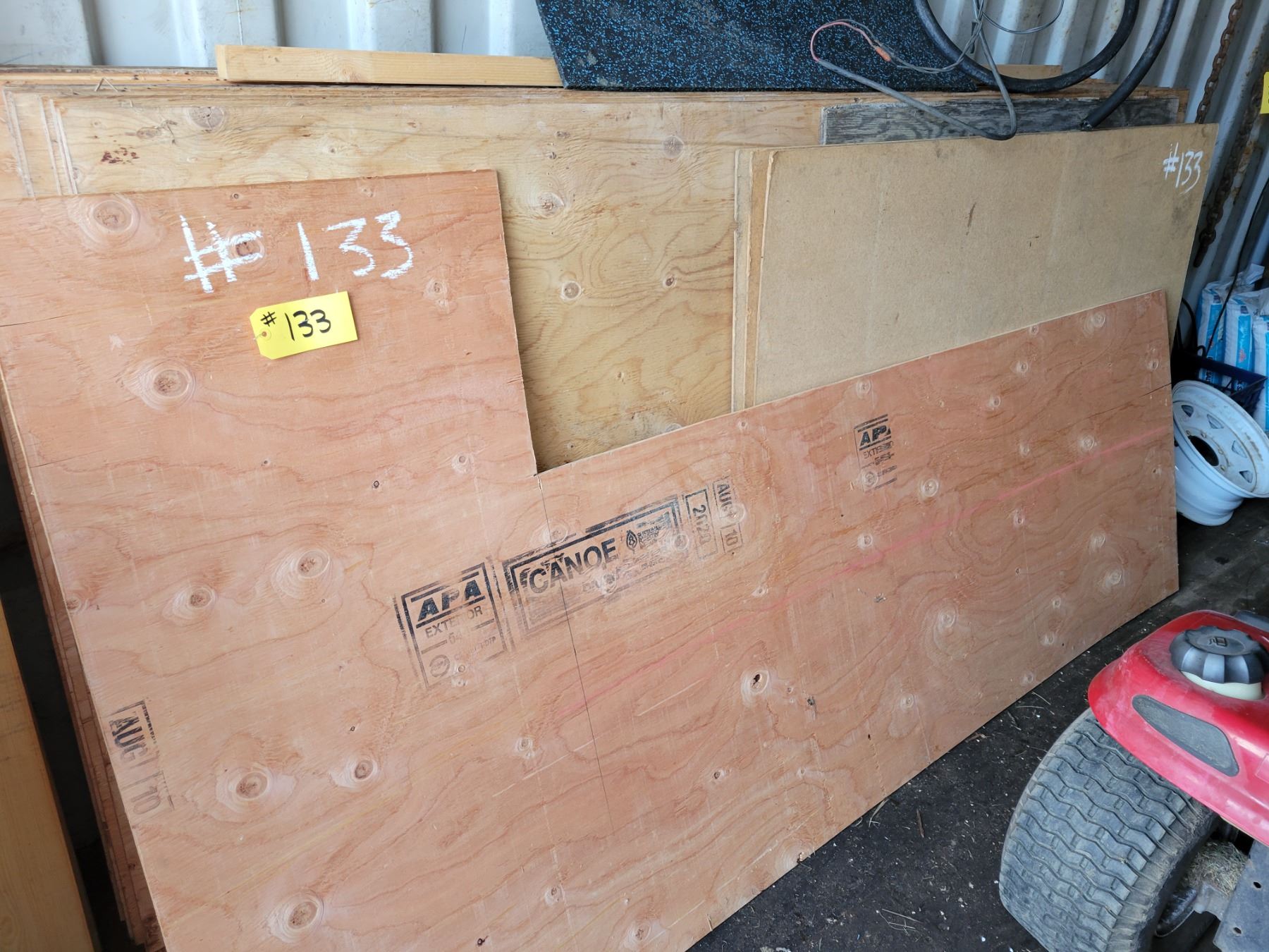 1 sheet 3/8" plywood - has chunks cut out; four 3/4" x 7" x 7' boards; 5 sheets 3/8" plywood; 9 sheets 3/4" plywood; other pieces of wood