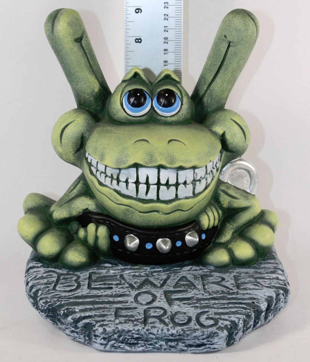 10" BEWARE OF FROG GARDEN STATUE