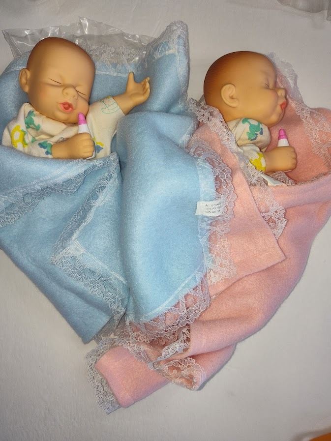 VINYL BABY DOLL WITH PLUSH BLANKET (PINK/BLUE)