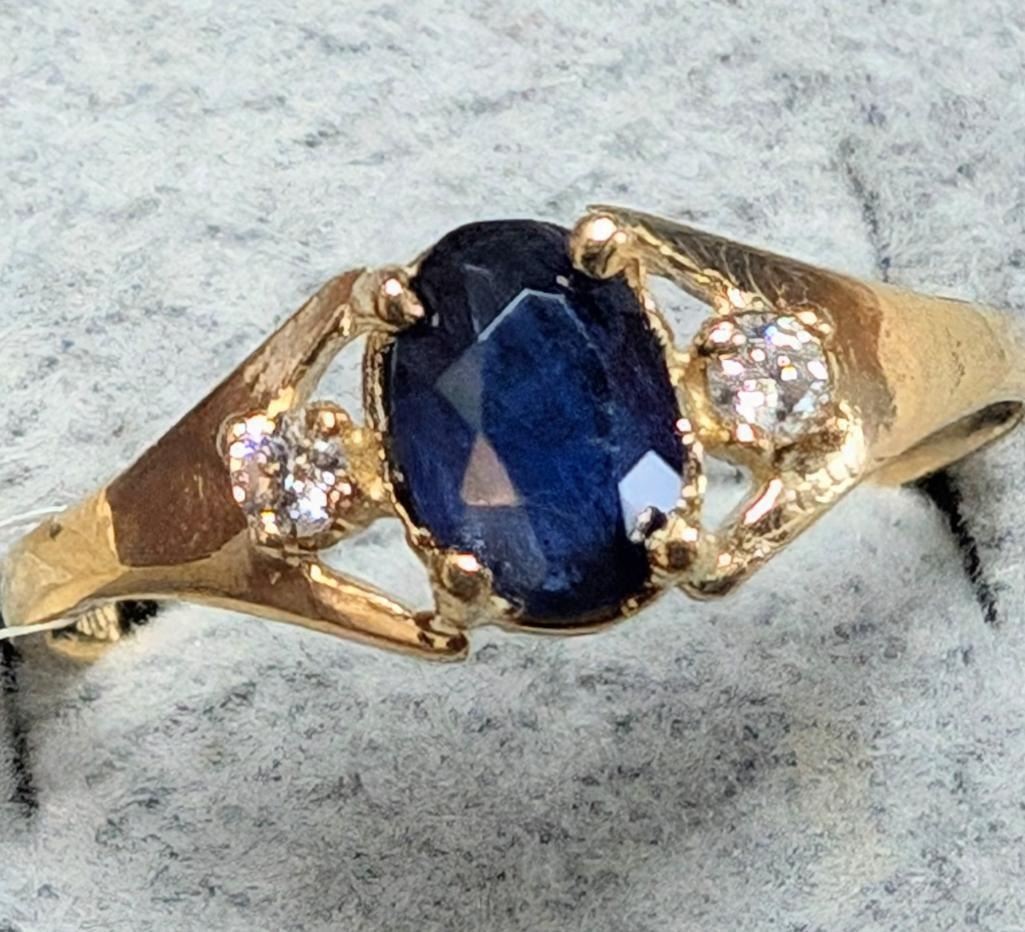 $1000, 10K(1.38g), SAPPHIRE (0.45ct), MOISSANITE (0.05ct)RING, size 6.5, appraised value $1000